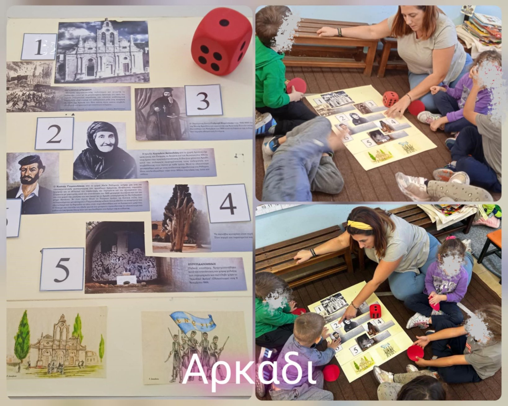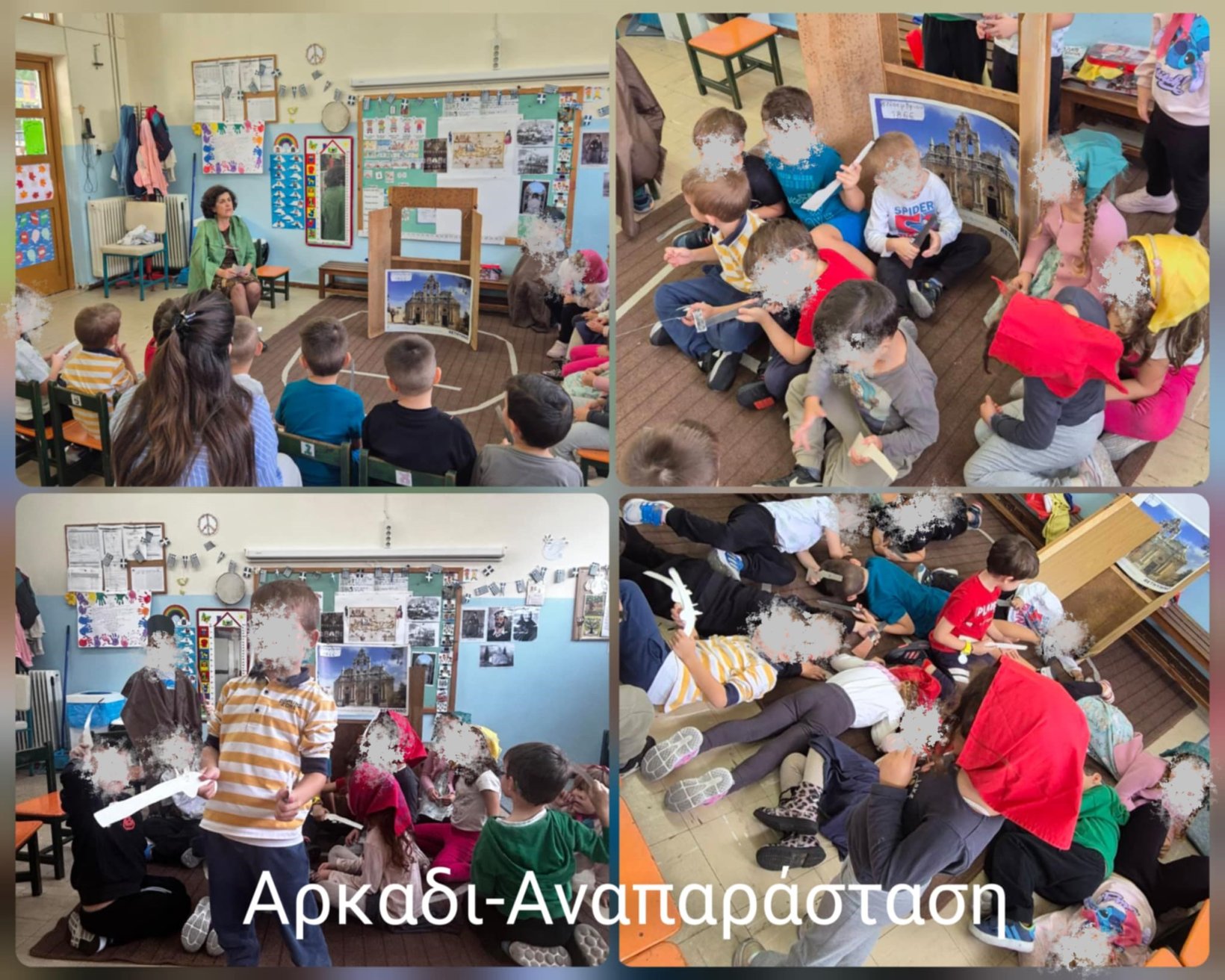 Το Αρκάδι αποτελεί κορυφαία πράξη του απελευθερωτικού αγώνα των Κρητών, σύμβολο ηρωισμού και θυσίας. Είναι το σημαντικότερο επεισόδιο της Κρητικής Επανάστασης του 1866. Η προσέγγισή του έγινε μέσα από την αφήγηση του ιστορικού γεγονότος, εποπτικό υλικό , φωτογραφίες και κείμενα της εποχής, σχετικά videos και δραστηριότητες δημιουργίας και έκφρασης βιωματικού χαρακτήρα.
