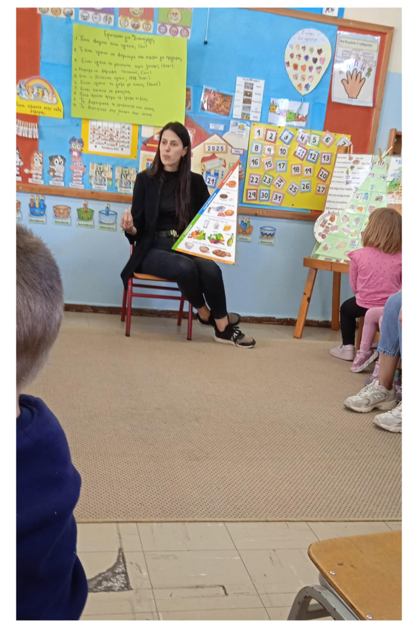 Η διατροφολόγος κ.Μαριλένα Περαντωνάκη επισκέφτηκε το σχολείο μας την Παρασκευή 21 Νοεμβρίου 2025 και μας μίλησε για την ισορροπημένη διατροφή μας που παρέχει στον οργανισμό τα απαραίτητα θρεπτικά συστατικά, την ενέργεια και το νερό που χρειάζεται για την καλή υγεία και ανάπτυξη μας. Μέσα από τις απαντήσεις στις ερωτήσεις που κάναμε μας έδωσε πληροφορίες για την οργάνωση του πρωινού αλλά και του φαγητού μας γενικότερα δίνοντας σημασία στην κατανάλωση ποικιλίας τροφών, όπως φρούτα, λαχανικά, ολικής άλεσης δημητριακά κλπ.