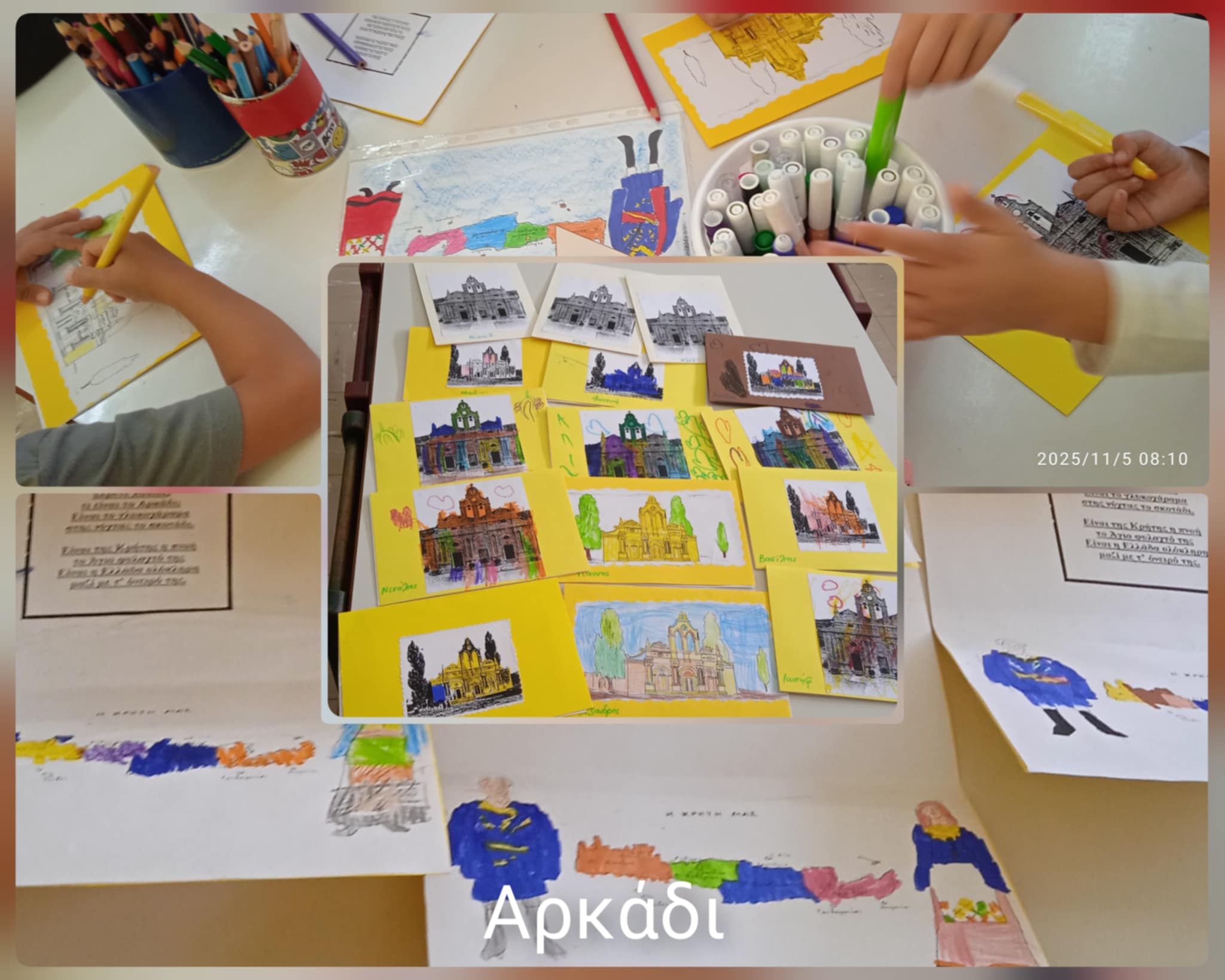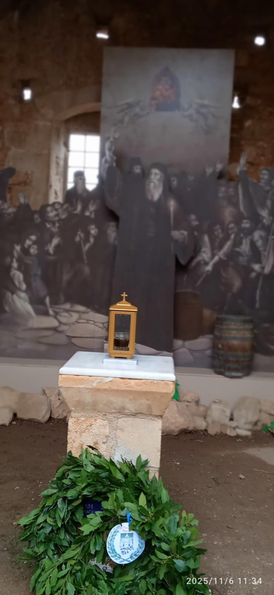 Την Πέμπτη 6 Νοεμβρίου 2025 επισκεφτήκαμε την ιστορική Μονή Αρκαδίου.Βιώσαμε την ιστορικότητα του μοναστηριού μέσα από την απλή και προσιτή αφήγηση του ιερομόναχου Παρθενίου ο οποίος μας ξενάγησε στα μέρη όπου παρουσιάζονται μπροστά μας ζωντανά τα σημάδια της ιστορίας και τα βήματα των προγόνων μας. Είδαμε τα μέρη όπου αγωνίστηκαν με πάθος για την ελευθερία και μεταφερθήκαμε στην εποχή εκείνη σταματώντας στην εκκλησία, την τραπεζαρία, τα κελαρικά, το μουσείο, το δέντρο, την πυριτιδαποθήκη, μέρη θυσίας των προγόνων μας. Με σεβασμό αποθέσαμε το στεφάνι μας για να τιμήσουμε την αυτοθυσία τους στο μνημείο της πυριτιδαποθήκης, τόπου σημείο αναφοράς του ολοκαυτώματος του Αρκαδίου.
