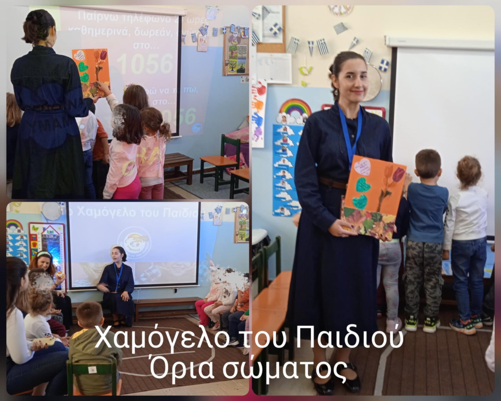Τα παιδιά μας μέσα από το πρόγραμμα έμαθαν για το “Χαμόγελο του Παιδιού”, τις δράσεις του για παιδιά που μπορεί να κακοποιούνται, να πεινούν, να έχουν χαθεί απομνηνονεύοντας το γνωστό τηλέφωνο ανάγκης του Χαμόγελου 1056. Ακόμη μέσα από βιωματικές δραστηριότητες κατανόησαν τον προσωπικό χώρο τους, τα όρια του σώματός τους και τον απαραίτητο και χρήσιμο κανόνα του εσώρουχου.