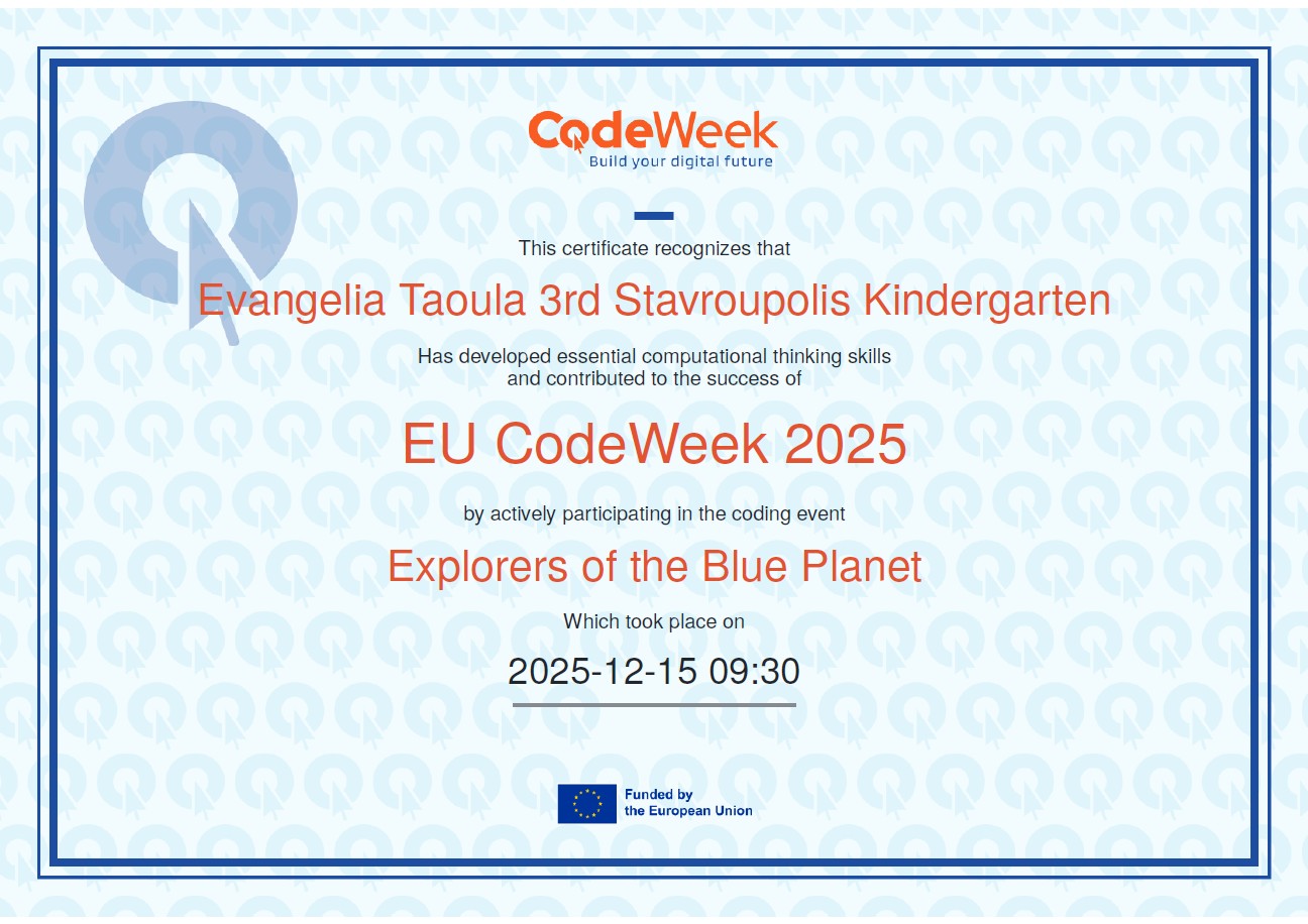 Το eTwinning έργο “Little Explorers of the Blue Planet” προσκαλεί μαθητές 5-11 ετών να γνωρίσουν τον μαγευτικό κόσμο των ωκεανών και να μάθουν πώς μπορούν να συμβάλουν στην προστασία τους. Μέσα από βιωματικές δράσεις, όπως καθαρισμούς παραλιών, πειράματα, καλλιτεχνικές δημιουργίες και συνεργασίες με σχολεία της Ευρώπης, τα παιδιά ανακαλύπτουν τη σημασία των υγιών θαλάσσιων οικοσυστημάτων. Χρησιμοποιώντας εργαλεία όπως ο Ευρωπαϊκός Άτλας των Θαλασσών, συλλέγουν δεδομένα, δημιουργούν αφίσες και έργα από ανακυκλωμένα υλικά και συνθέτουν μια κοινή ιστορία για τη θάλασσα. Το έργο ενώνει επιστήμη, τέχνη και περιβαλλοντική δράση, εμπνέοντας τους μαθητές να γίνουν «μικροί φύλακες του μπλε πλανήτη». 🌎💙