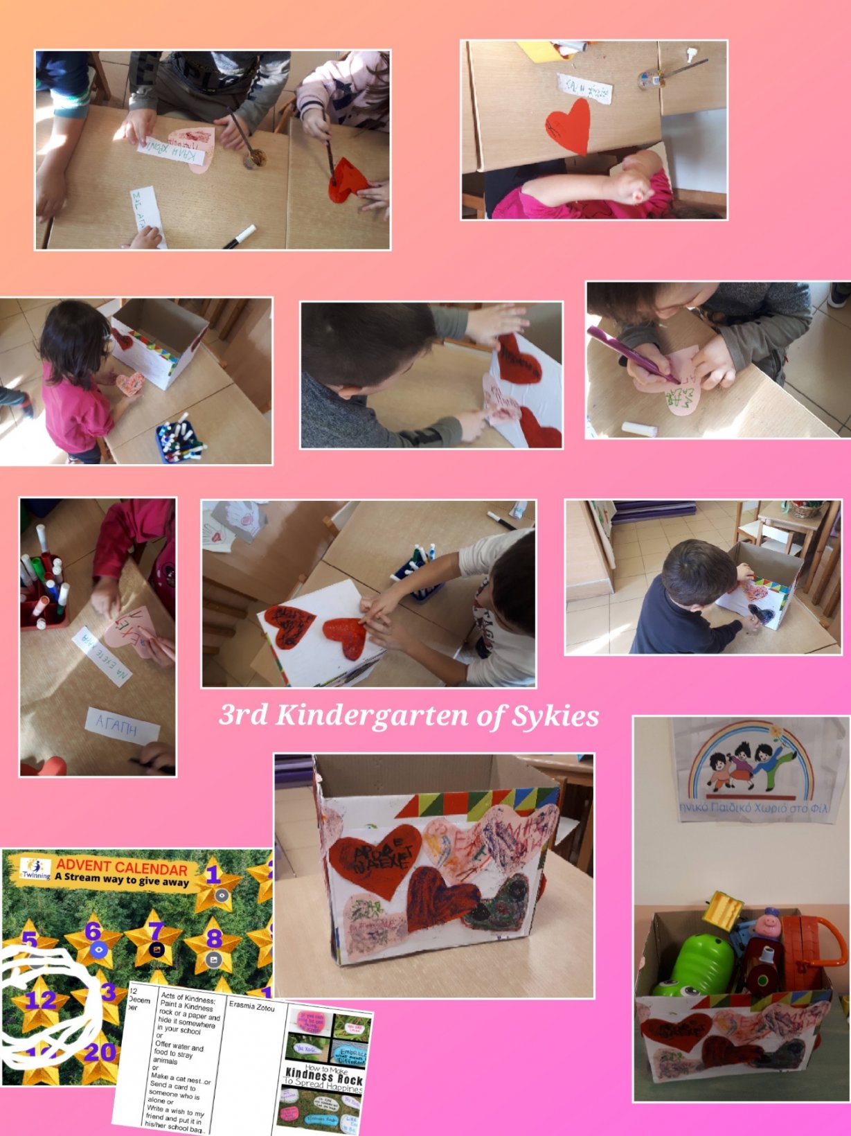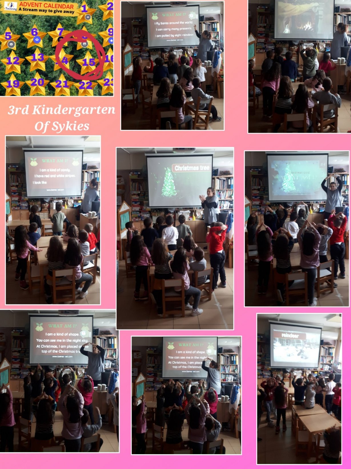 Στα πλαίσια του του etwinning προγράμματος μας “A Stream way to give away” όλοι οι εκπαιδευτικοί συνεργαστήκαμε για να ετοιμάσουμε ένα ξεχωριστό ημερολόγιο για κάθε μέρα του Δεκέμβρη. Κάθε μέρα μια νέα χριστουγεννιάτικη έκπληξη! Αγγίξτε το αστέρι και απολαύστε!!!! https://view.genial.ly/637fc98125d1600011c57796/interactive-image-advent-calendar-a-stream-way-to-give-away Τα παιδιά με ενθουσιασμό ολοκλήρωσαν όλες τις αποστολές.