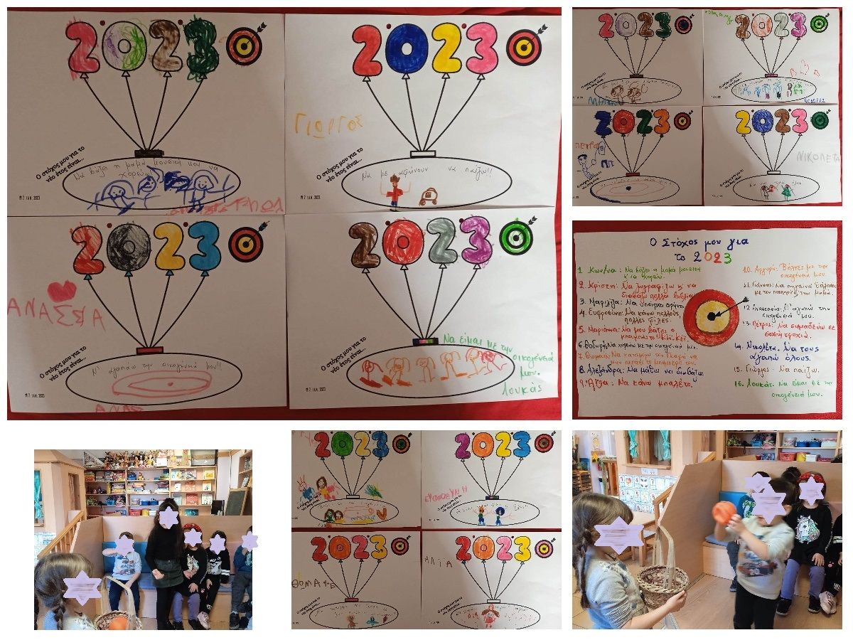 Με ευχές καλωσορίσαμε τη νέα χρονιά και στα τρία τμήματα του νηπιαγωγείου μας, για υγεία, αγάπη, ειρήνη, χαρά! Επιπλέον όμως, μια που είναι η αρχή της χρονιάς, καθορίσαμε στόχους, για να προσπαθήσουμε και να καταφέρουμε να τους πετύχουμε.