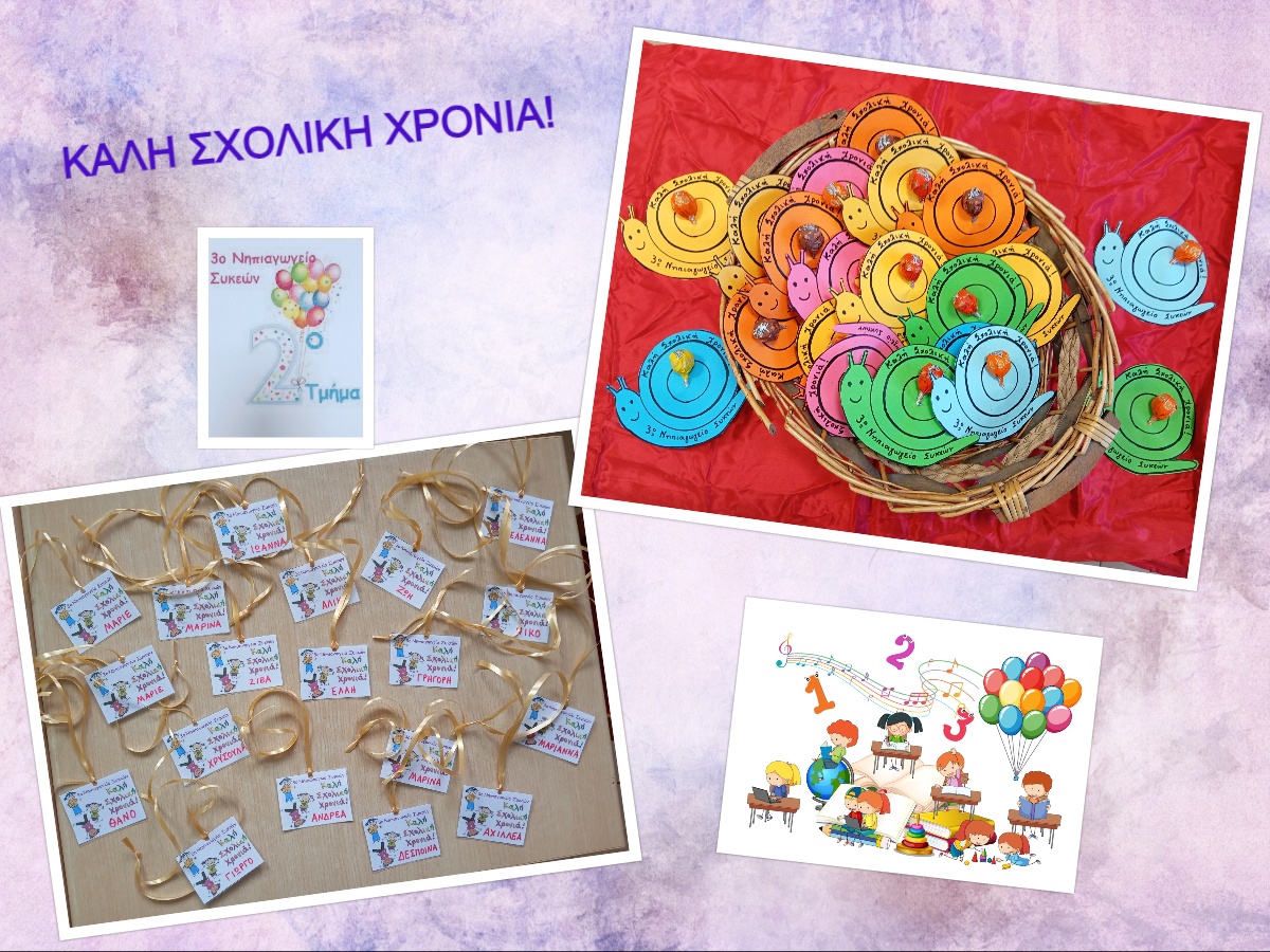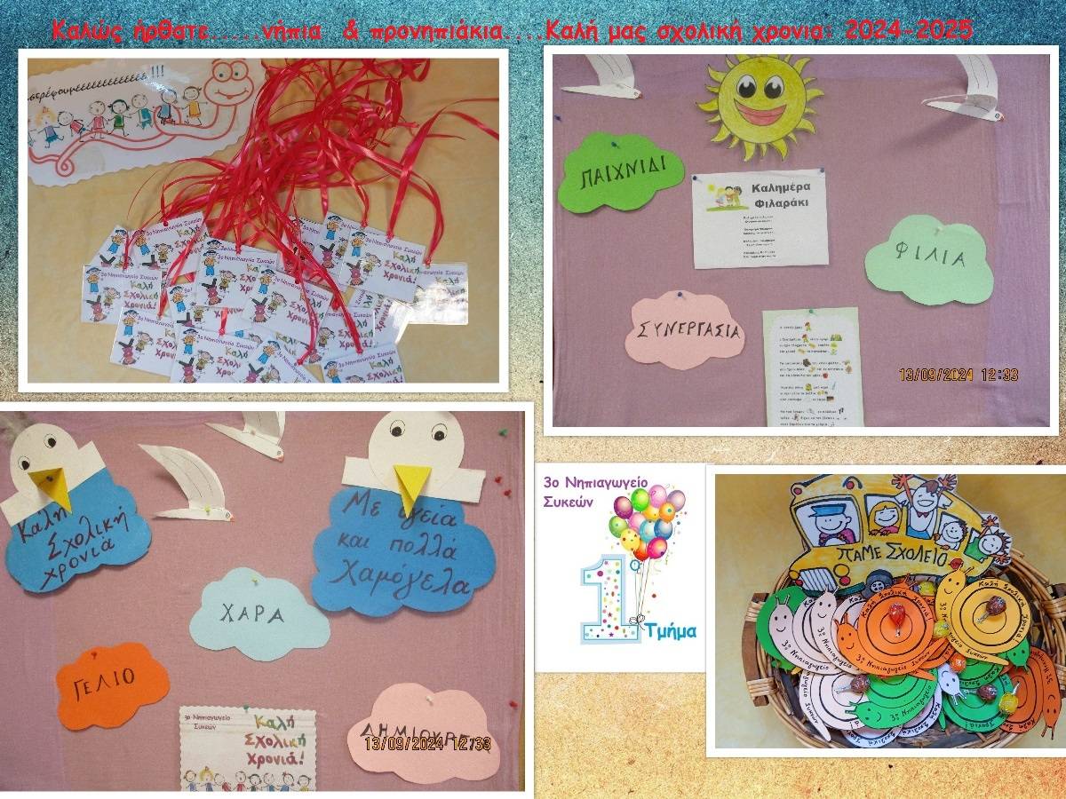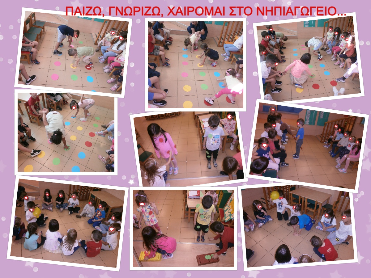 Πρώτη μέρα στο σχολείο και με το σύνθημα «Ελάτε να γίνουμε φίλοι!» παίξαμε για να γνωριστούμε, χορέψαμε, τραγουδήσαμε, συστηθήκαμε και γευτήκαμε σιγά σιγά πολλές από τις δραστηριότητες του προγράμματος του νηπιαγωγείου. Γνωρίσαμε τους χώρους του νηπιαγωγείου μας και σταθήκαμε ιδιαίτερα στους χώρους υγιεινής! Ζωγραφίσαμε για στολίσουμε την τάξη μας με τα έργα μας, ακούσαμε παραμύθι, φάγαμε με παρεούλα τους συμμαθητές μας, παίξαμε στις γωνιές και στην αυλή και αποχαιρετιστήκαμε με δωράκι σαλιγκαράκι και μια γλυκειά εκπληξούλα! Καλωσήρθατε παιδάκια!