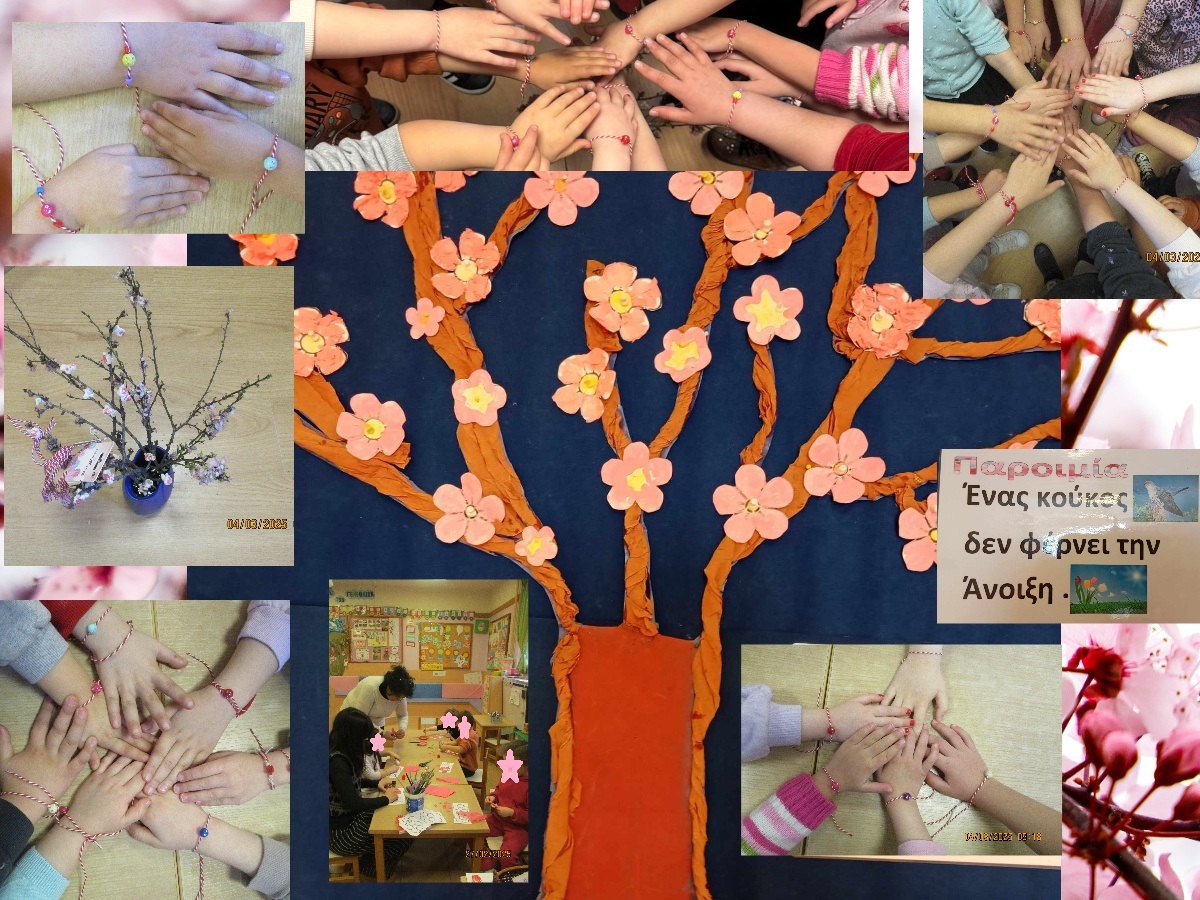 Σύμφωνα με το έθιμο από τη 1η ως τις 31 του Μάρτη, τα παιδιά φορούν στον καρπό του χεριού τους ένα βραχιολάκι, φτιαγμένο από στριμμένη άσπρη και κόκκινη κλωστή, τον “Μάρτη” ή “Μαρτάκι”. Σύμφωνα με τη λαϊκή παράδοση, ο “Μάρτης” προστατεύει τα πρόσωπα των παιδιών από τον πρώτο ήλιο της Άνοιξης, για να μην καούν. Ευχαριστούμε πολύ το σύλλογο γονέων που μας βοήθησε να τηρήσουμε το έθιμο! Καλό μήνα Μάρτη!