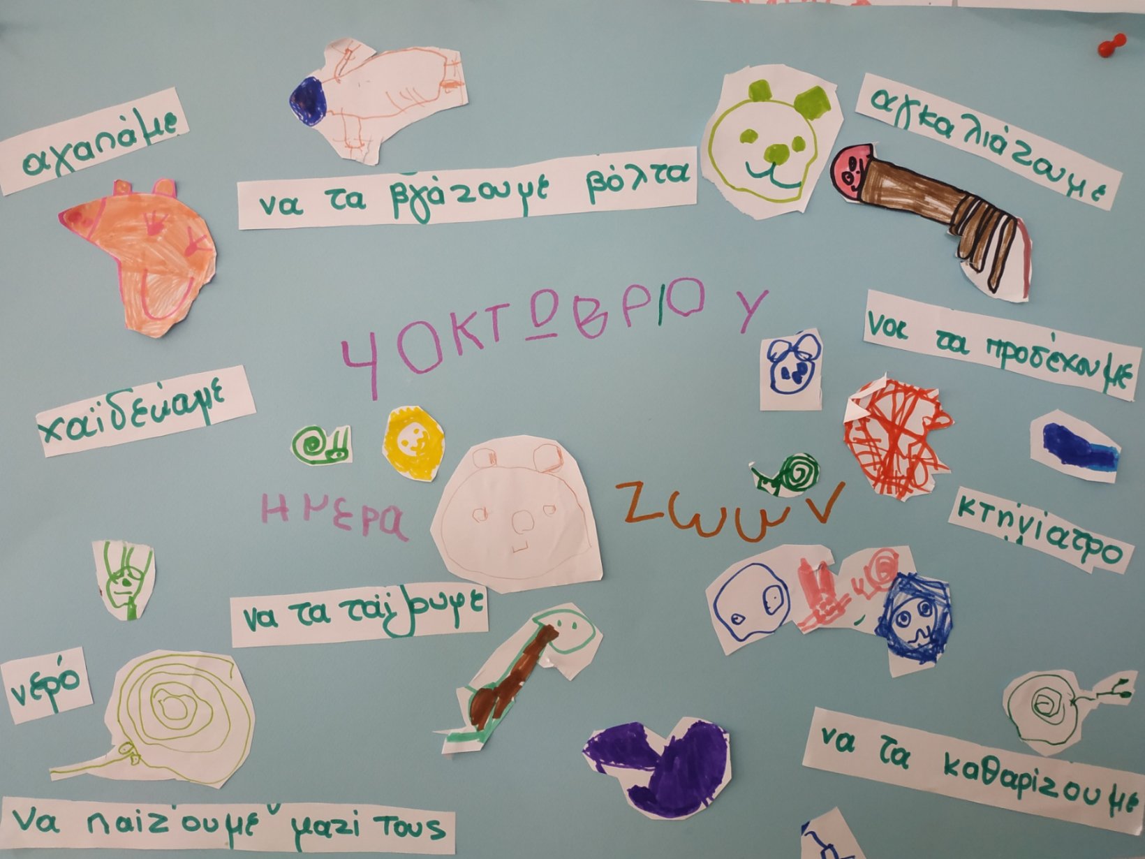 Στο νηπιαγωγείο, η Παγκόσμια Ημέρα Ζώων στις 4 Οκτωβρίου γιορτάστηκε με δραστηριότητες που στοχεύουν στην ευαισθητοποίηση των παιδιών για τα δικαιώματα των ζώων και την φιλοζωία γενικότερα.