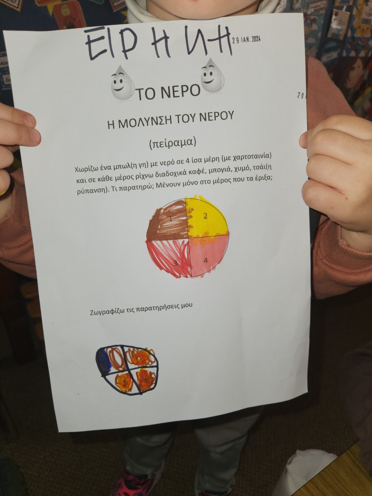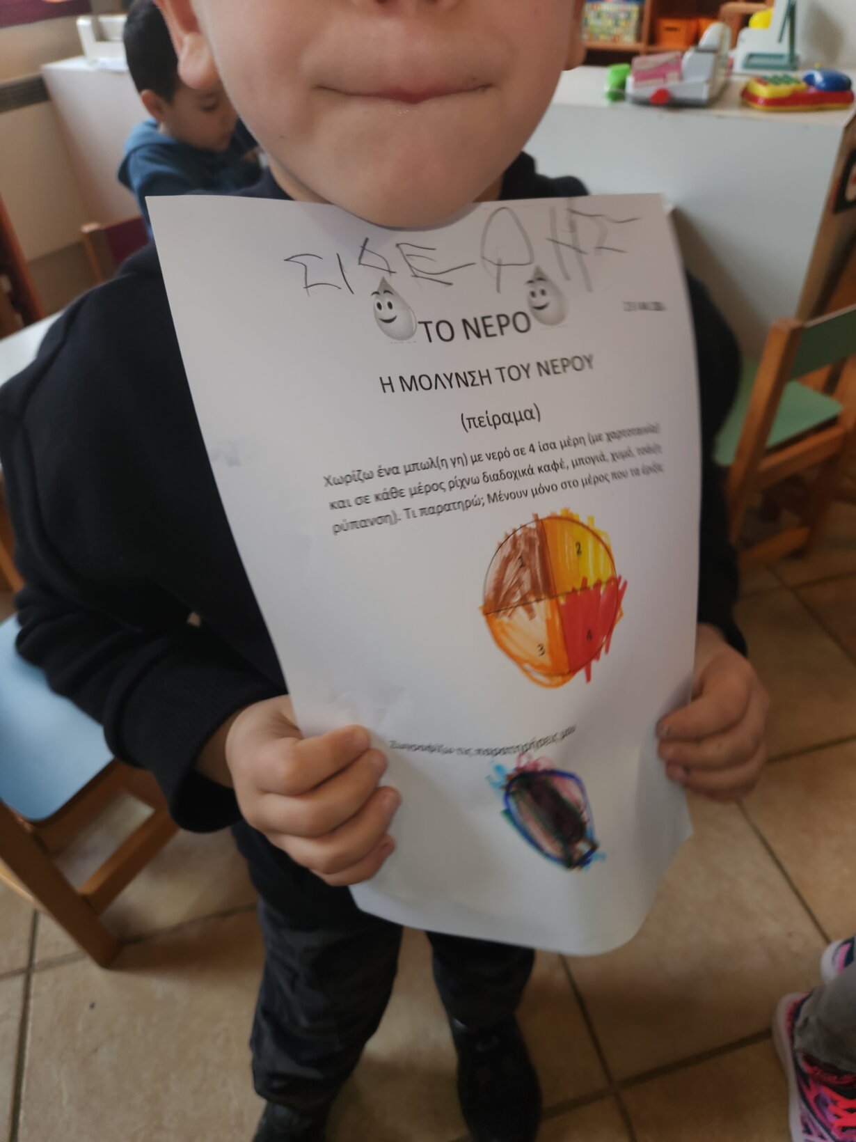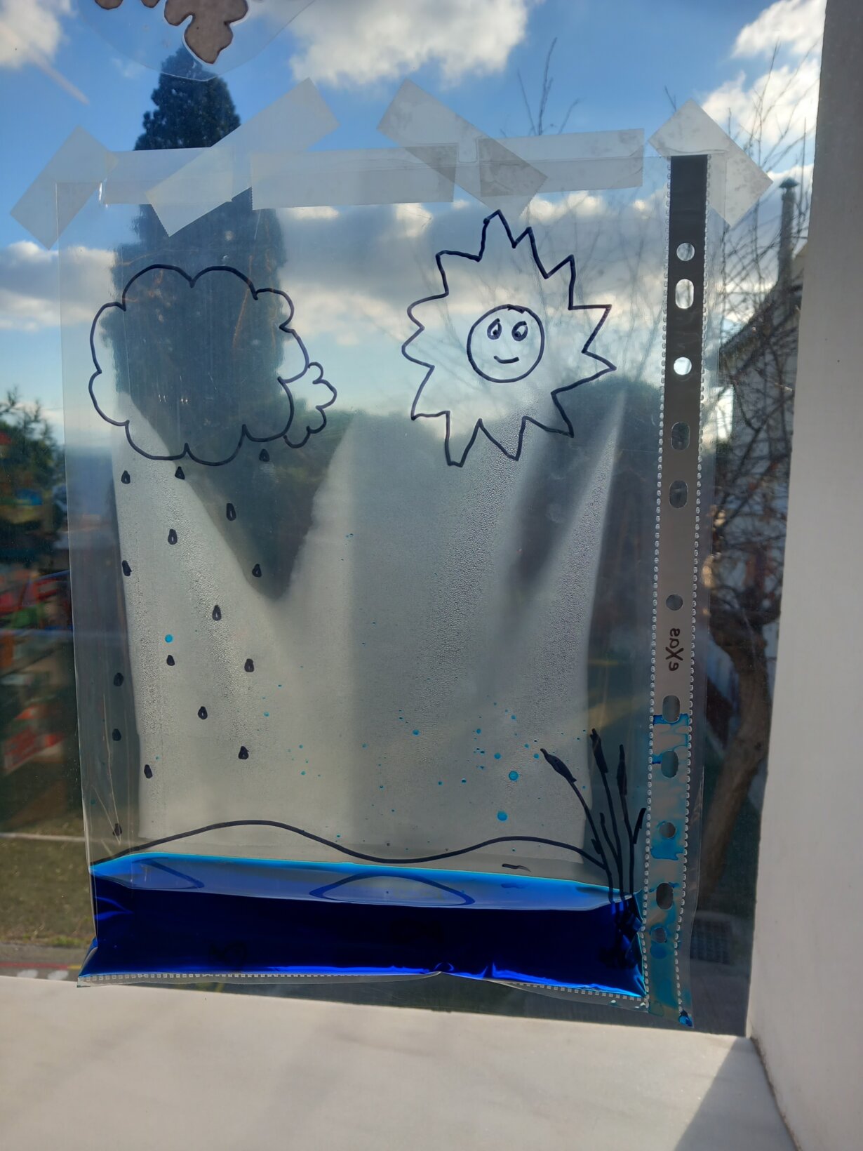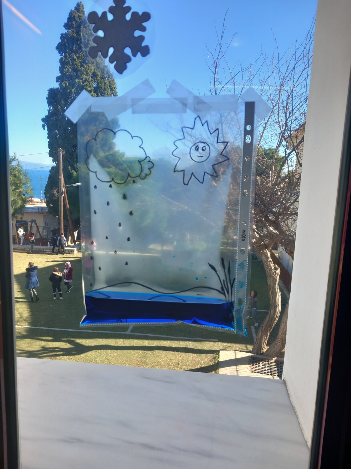 Πείραμα στο παράθυρο του νηπιαγωγείου για παρατήρηση του κύκλου του νερού