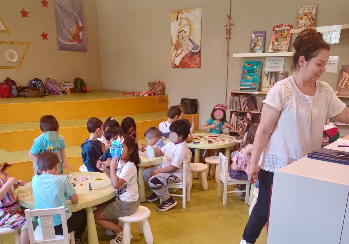 Στη συνέχεια τα παιδιά κάθισαν στα τραπεζάκια και έφτιαξαν μάσκες όπως εκείνες που διάβασαν στο παραμύθι.