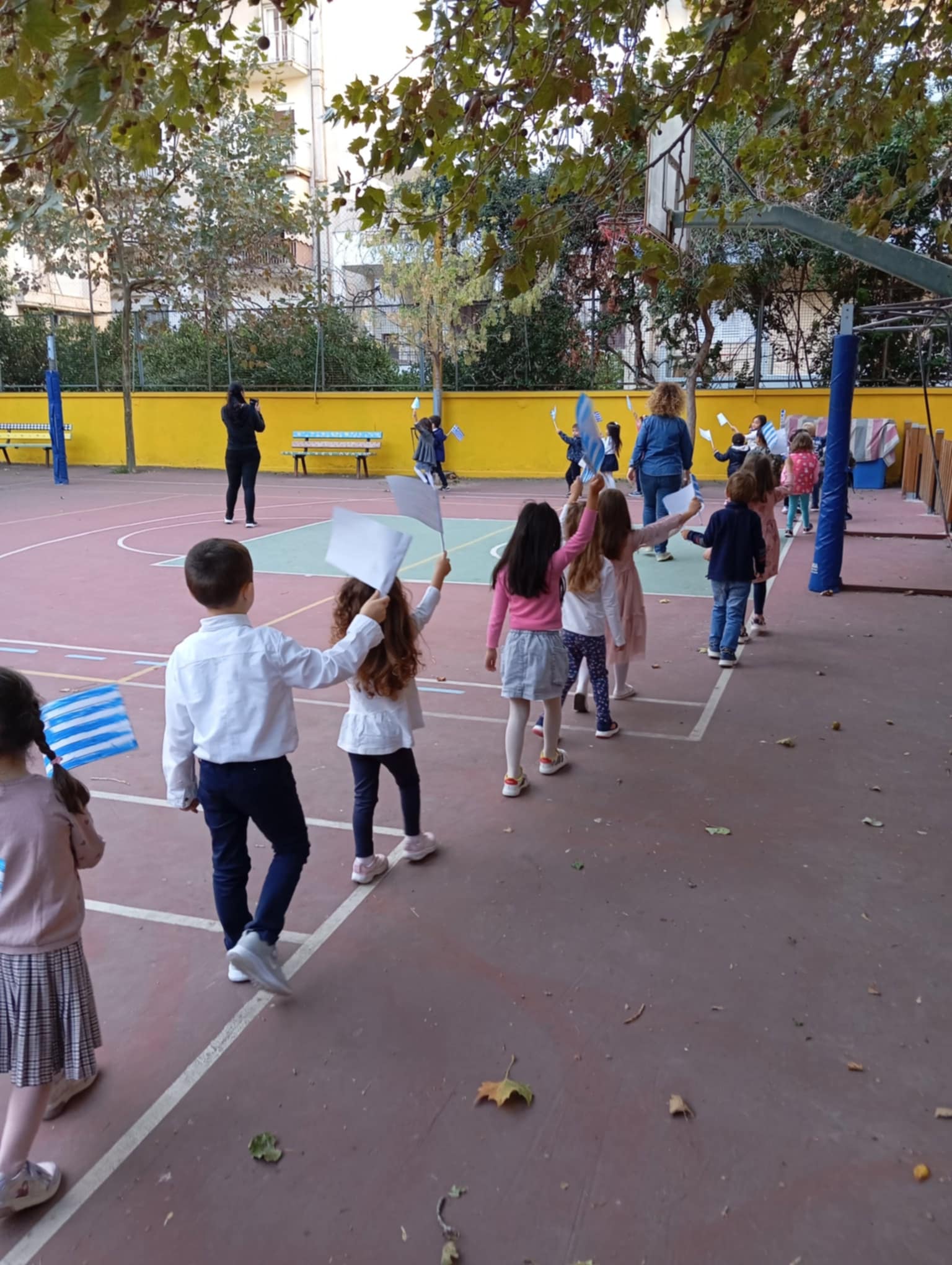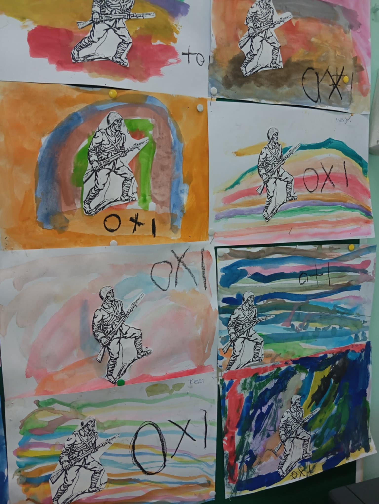 Δεν έλειψε η αναφορά στους στρατιώτες του 1940, οι οποίοι πάλεψαν για την ελευθερία της Ελλάδας και, όπως είπαμε με τα παιδιά, φώναξαν “ΟΧΙ” στον πόλεμο… Εκτός αυτού, μιλήσαμε για τη σημαία της Ελλάδας, αλλά και άλλων χωρών, όπως οι Φιλιππίνες, η Αλβανία, η Γερμανία κτλ.
