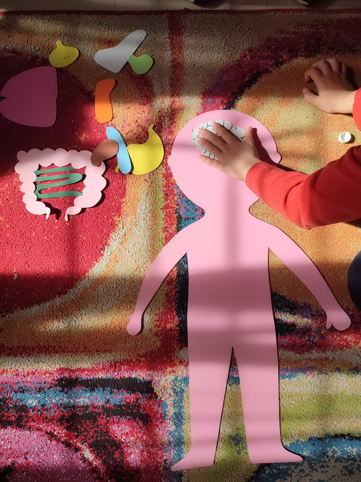 Μέσα από αυτήν την ενότητα  έγινε προσπάθεια, ώστε να κατανοήσουν τα παιδιά το ταξίδι της τροφής και συναρμολόγησαν σε ομαδική εργασία τα όργανα του σώματος.
