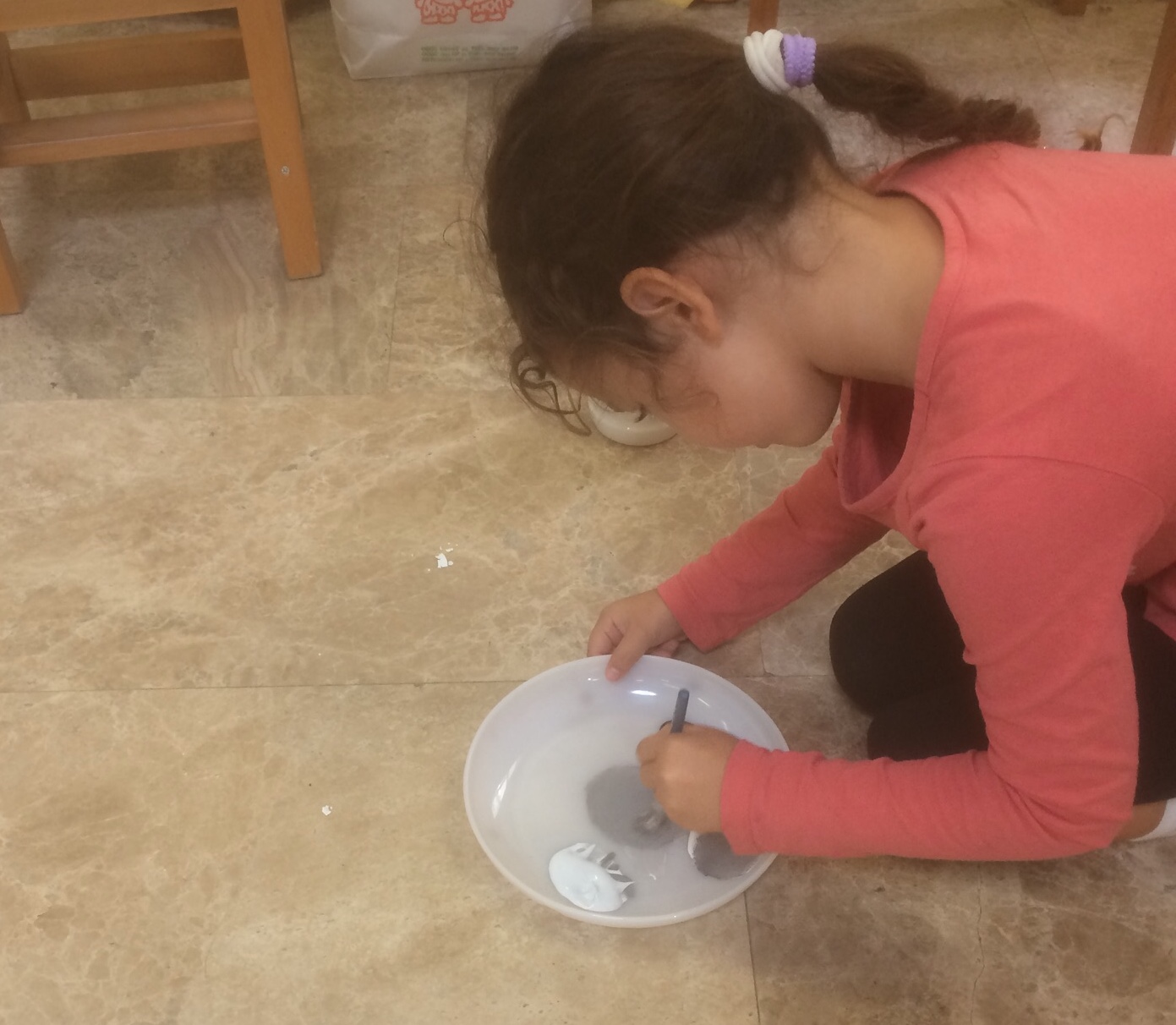 Πειραματιστήκαμε με τα ποια πράγματα επιπλέουν και ποια βυθίζονται στο νερό. Τα παιδιά πρότειναν αντικείμενα και έκαναν υποθέσεις. Παρατηρήσαμε ότι δεν βουλιάζουν πάντα τα μεγάλα ή τα βαριά πράγματα