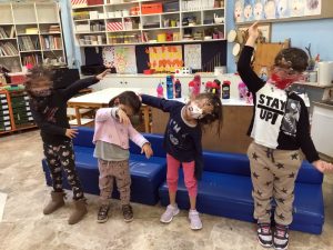 Διαβάσαμε τον μύθο του Αισώπου, Ο ήλιος και ο βοριάς. Μάθαμε τους διαλόγους και παίξαμε με τις σκιές που δημιουργούνταν, όταν βάζαμε τις μάσκες και το σώμα μας μπροστά από τον προβολέα.