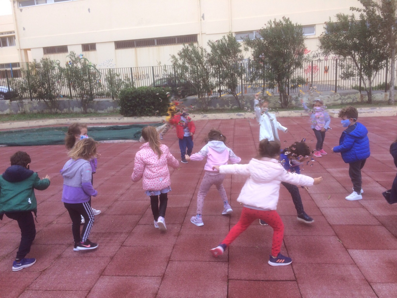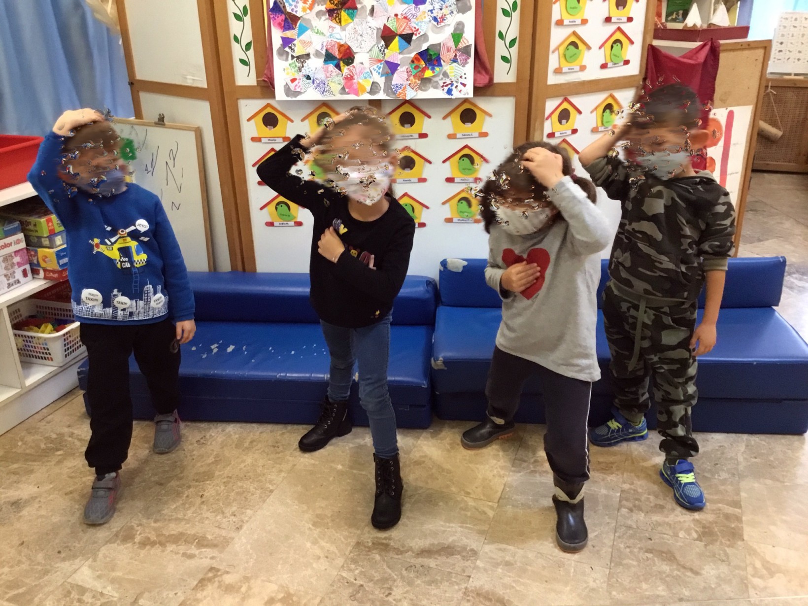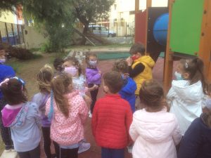 Έτσι μας δόθηκε η ευκαιρία να τα παρατηρήσουμε και να μιλήσουμε γι’ αυτά. Μιλήσαμε για τα φυλλοβόλα και τα αειθαλή δέντρα. Κάποια φύλλα κιτρινίζουν, ξεραίνονται και πέφτουν ενώ κάποια παραμένουν πράσινα σε όλη τη διάρκεια του χρόνου, χωρίς να φοβούνται τον χιονιά, το κρύο.