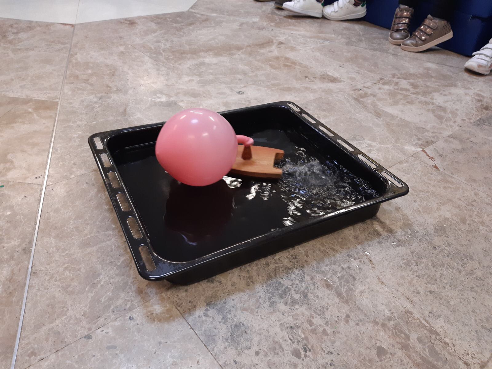 ( ο αέρας από το μπαλόνι έβγαινε απότομα και με δύναμη και το καράβι βυθιζόταν, καταλάβαμε λοιπόν ότι πρέπει να είναι κατάλληλος ο αέρας, για να ταξιδέψει ένα καράβι με πανί, όπως ο Ζέφυρος που άφησε ο Αίολος για να πάει το καράβι του Οδυσσέα στην Ιθάκη)