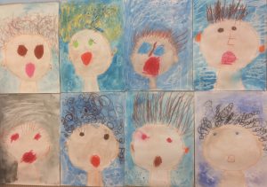 Ζωγραφίσαμε το πορτρέτο μας, ξαφνιασμένο από τη δύναμη του αέρα. Διασκεδάσαμε ζωγραφίζοντας τα μαλλιά μας να πετούν με τη δύναμη του αέρα!