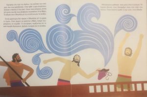 Είπαμε την ιστορία του Οδυσσέα και του Αίολου. Ο Αίολος ήταν ο ταμίας των ανέμων. Παρατηρήσαμε το καράβι του Οδυσσέα. Είδαμε ότι κινούνταν με κουπιά και πανιά. Και ποιος φούσκωνε τα πανιά; Ο αέρας.