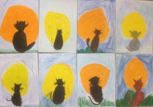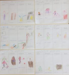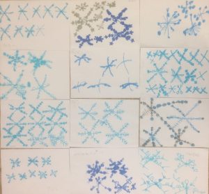 Αφού χωριστήκαμε σε τέσσερις ομάδες – εποχές η κάθε μια αποτύπωσε με την τεχνική και τα υλικά που επέλεξε, το πώς θα ήταν ένα δέντρο, μια κερασιά, σε κάθε εποχή.