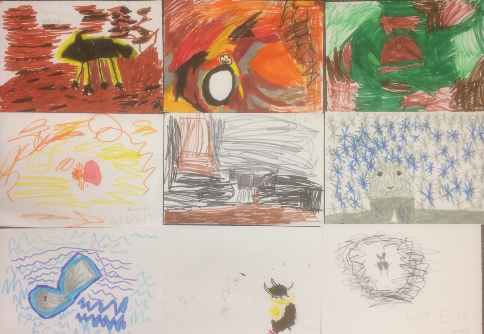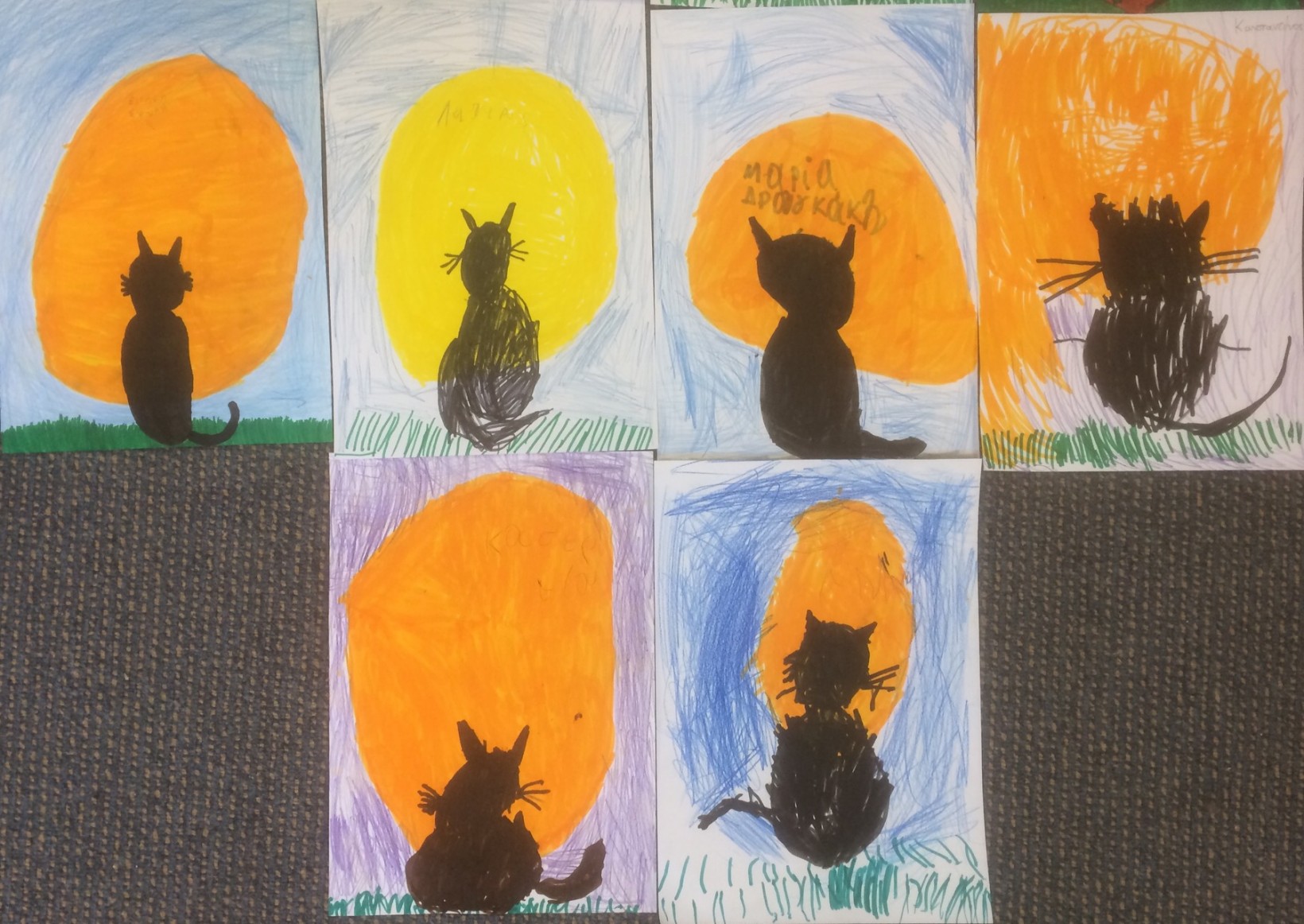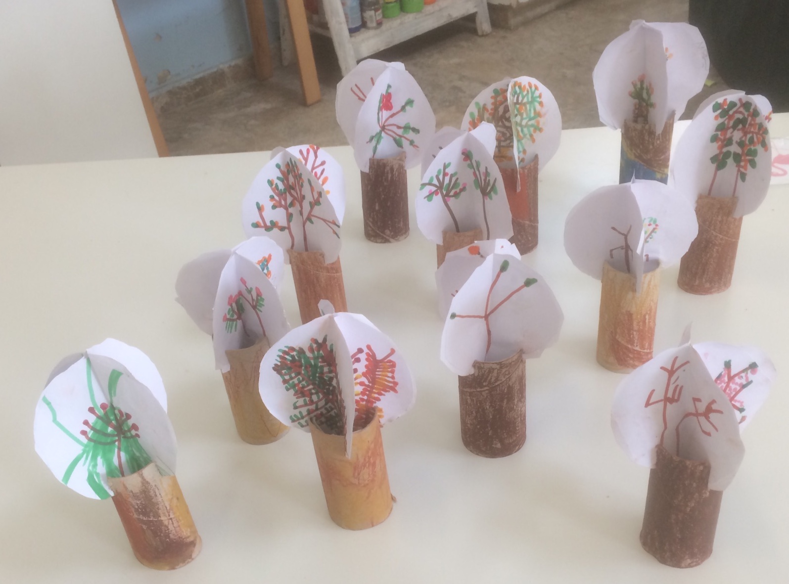 Αφού χωριστήκαμε σε τέσσερις ομάδες – εποχές η κάθε μια αποτύπωσε με την τεχνική και τα υλικά που επέλεξε, το πώς θα ήταν ένα δέντρο, μια κερασιά, σε κάθε εποχή.