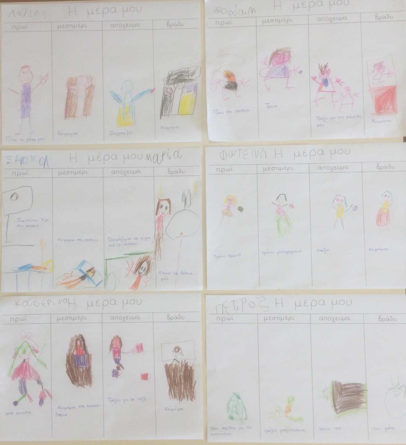 Οι εποχές κάνουν ένα μεγάλο κύκλο που συνεχώς επαναλαμβάνεται. Για να κατανοήσουμε καλύτερα την κυκλική ακολουθία των εποχών παίξαμε με τα σύμβολα της κάθε εποχής, που αποφασίσαμε από πριν ποια θα είναι: δώρα για τον χειμώνα, τουλίπες για την άνοιξη, ήλιος για το καλοκαίρι και ένα φύλλο για το φθινόπωρο. Προσπαθήσαμε να τα βάλουμε στην σωστή χρονική σειρά ξεκινώντας κάθε φορά με ένα διαφορετικό σύμβολο.