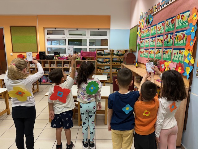 Παίξαμε με τους αριθμούς από το 1-10: γίναμε “λουλούδια” και σχηματίσαμε ομάδες ανάλογα με τον αριθμό.