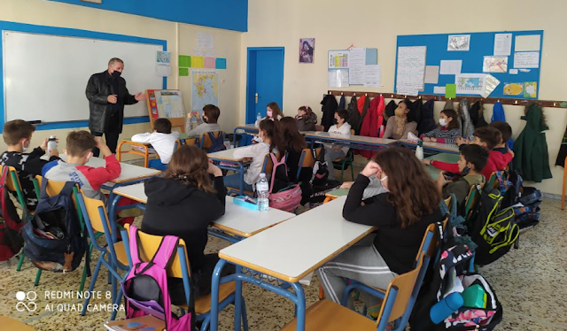 Είχαμε όμως και την ιδιαίτερη χαρά να φιλοξενήσουμε την Τρίτη 26 Οκτωβρίου, ανήμερα του Αγίου Δημητρίου, στην τάξη μας, τον παππού του Ευθύμη, ο οποίος με πολλή παραστατικότητα και ζωντάνια μας αφηγήθηκε γεγονότα που του εξιστορούσε η γιαγιά του όταν οι Γερμανοί μπήκαν στο χωριό τους και η ίδια κινδύνευσε μαζί με τα 5 μικρά της παιδιά. Μας είπε και άλλα πολλά, παίρνοντας αφορμή από τις ερωτήσεις των παιδιών, όχι μόνο για τον πόλεμο αλλά και για τα παιδικά του χρόνια και τις ιδιαίτερες συνθήκες μέσα στις οποίες μεγάλωναν τα παιδιά παλιότερα.
