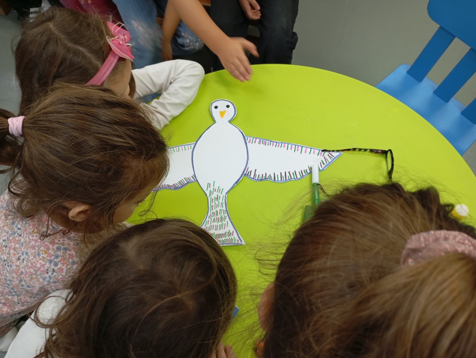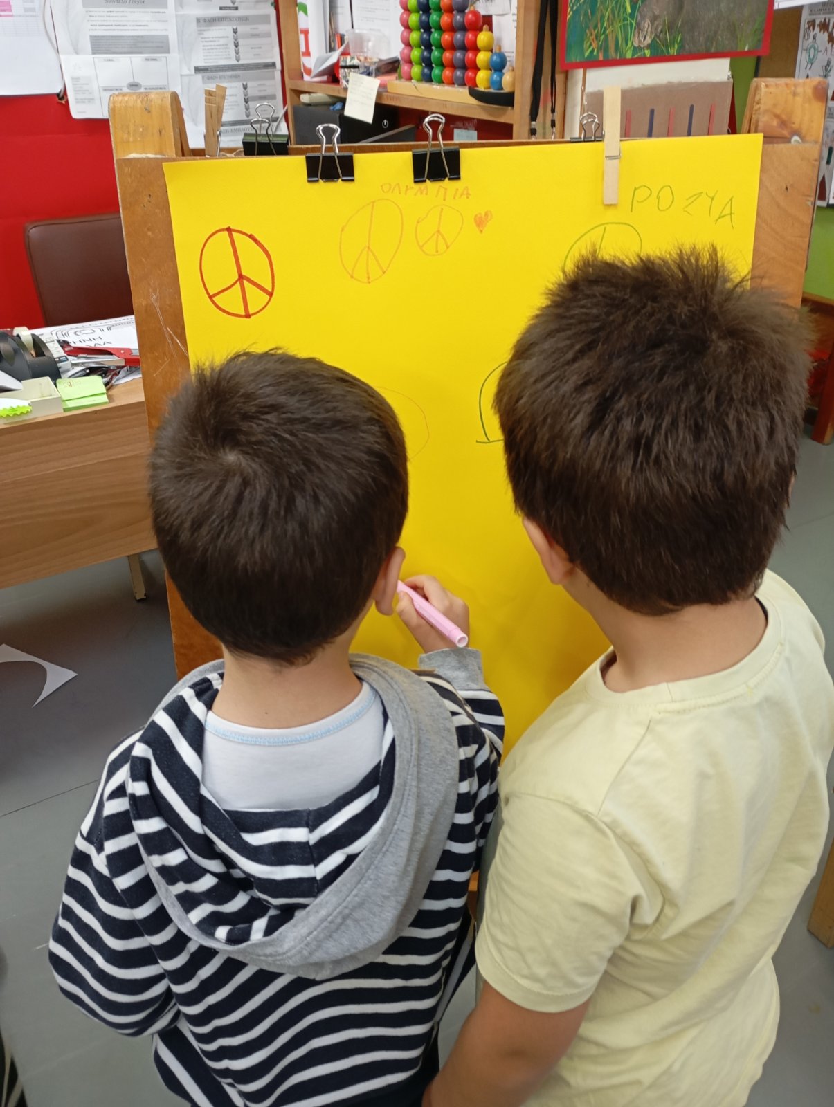 Απλά και όμορφα μάθαμε το τραγούδι μας μαζί με το σήμα της Ειρήνης και φιλοτεχνήσαμε αφίσα με το σύμβολό της , το περιστέρι …