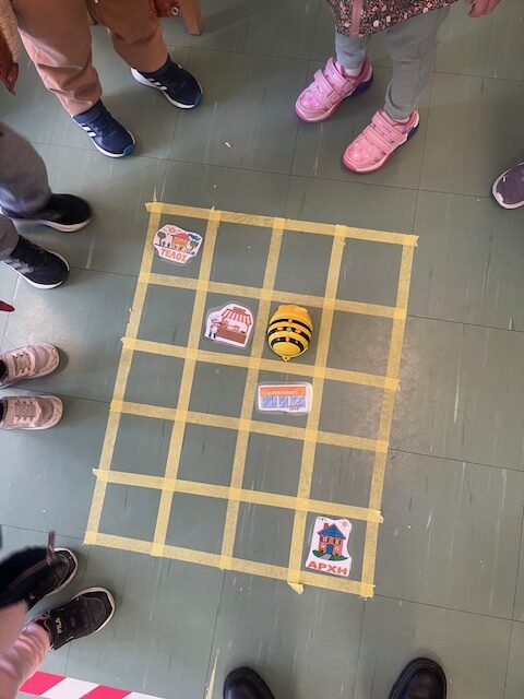 - Τα παιδιά με τη βοήθεια των γονέων τους, οργανώνουν έναν περίπατο ως ξεναγοί και φωτογραφίζουν ένα σημείο της πόλης τους.Έπειτα οι μαθητές/-τριες σε ομάδες αξιοποιώντας τη ρουτίνα σκέψης Αρχή-Μέση-Τέλος, δημιουργούν μια ιστορία με αφορμή τις φωτογραφίες και τις τοποθετούν στα αντίστοιχα πεδία σχετικού φύλλου εργασίας. Στη συνέχεια κάθε ομάδα παρουσιάζει την ιστορία της στο πλέγμα και σχεδιάζουν ένα αλγοριθμικό μονοπάτι που θα εκτελέσει το επιδαπέδιο ρομπότ.