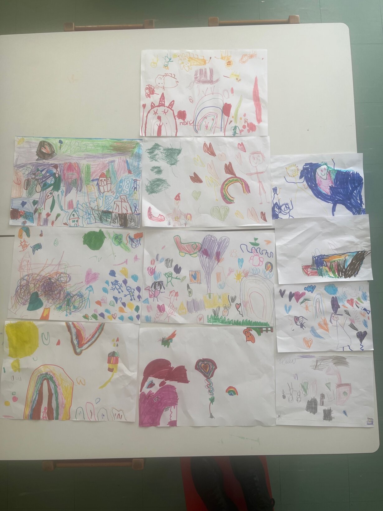 Γύρω-γύρω στο μεγάλο μας στέφανι, τα παιδιά κόλλησαν τις υπέροχες ζωγραφιές τους, όλες με θέμα την καλοσύνη. Μέσα από τα έργα τους, αποτύπωσαν τις δικές τους σκέψεις και συναισθήματα για το πόσο σημαντικό είναι να είμαστε καλοί με τους γύρω μας.