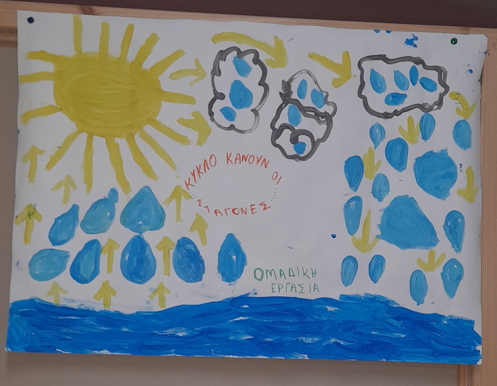 Το εργαστήριο δεξιοτήτων συνεχίστηκε με πειράματα. Κάναμε πειράματα (εξάτμιση – συμπύκνωση, τήξη πήξη, επιπλέει βουλιάζει) για να καταλάβουν τα παιδιά τις ιδιότητες που έχει το νερό. Μάθαμε για τον κύκλο του νερού μέσα από τα βιβλία του σχολείου μας ,παραμύθια και αναζητώντας ψηφιακό υλικό βίντεο και σχετικά τραγούδια. Τα παιδιά παίζουν ψηφιακά κουίζ και παζλ στο τάμπλετ. Ακούσαμε και μάθαμε το ποιήμα του Ζαχαρία Παπαντωνίου:” Από πού είσαι ποταμάκι”. Το εργαστήριο ολοκληρώνεται με το ρομπότ Beebot το μελισσάκι. Προγραμματίσαμε τις κατευθύνσεις προς τις οποίες μπορεί να κινηθεί και παίξαμε ακολουθώντας τα στάδια του ταξιδιού του νερού.