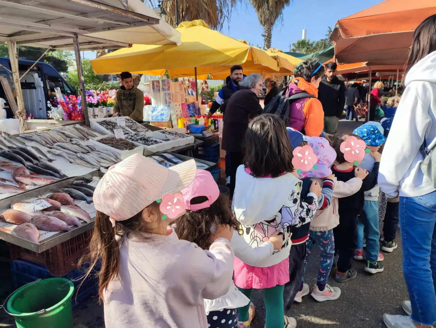 επισκεφτήκαμε τη λαϊκή αγορά του Αγίου Στεφάνου και αγοράσαμε φρούτα και λαχανικά,