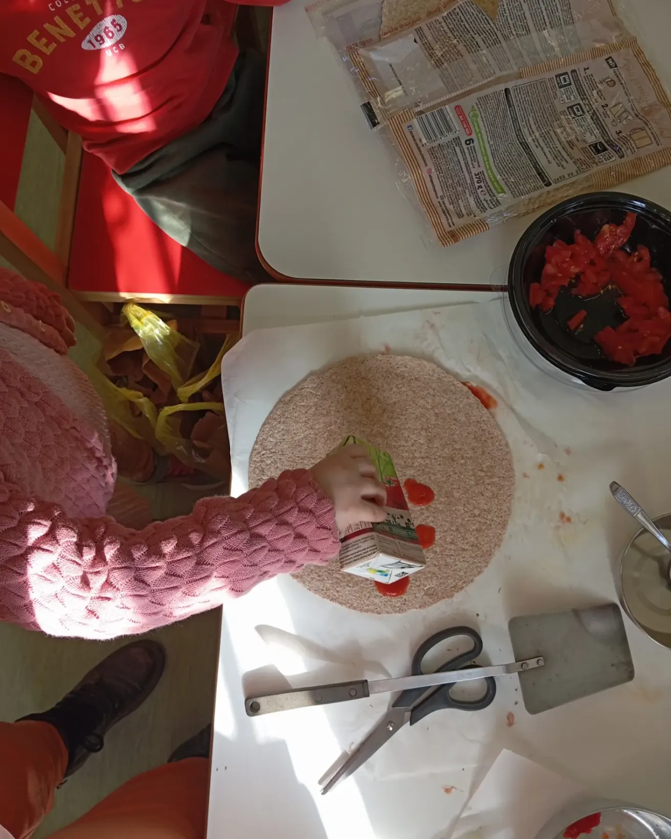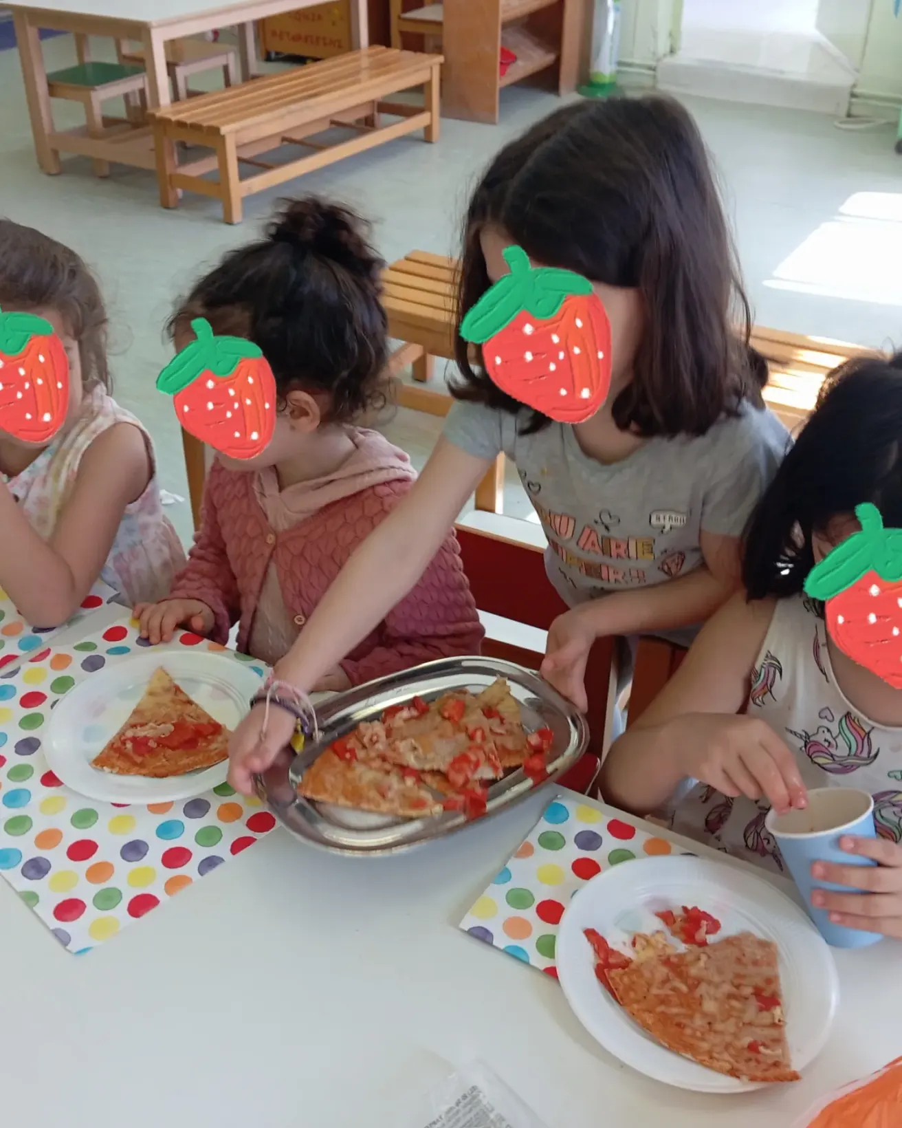μαγειρέψαμε και φάγαμε πίτσα και φρουτοσαλάτα.