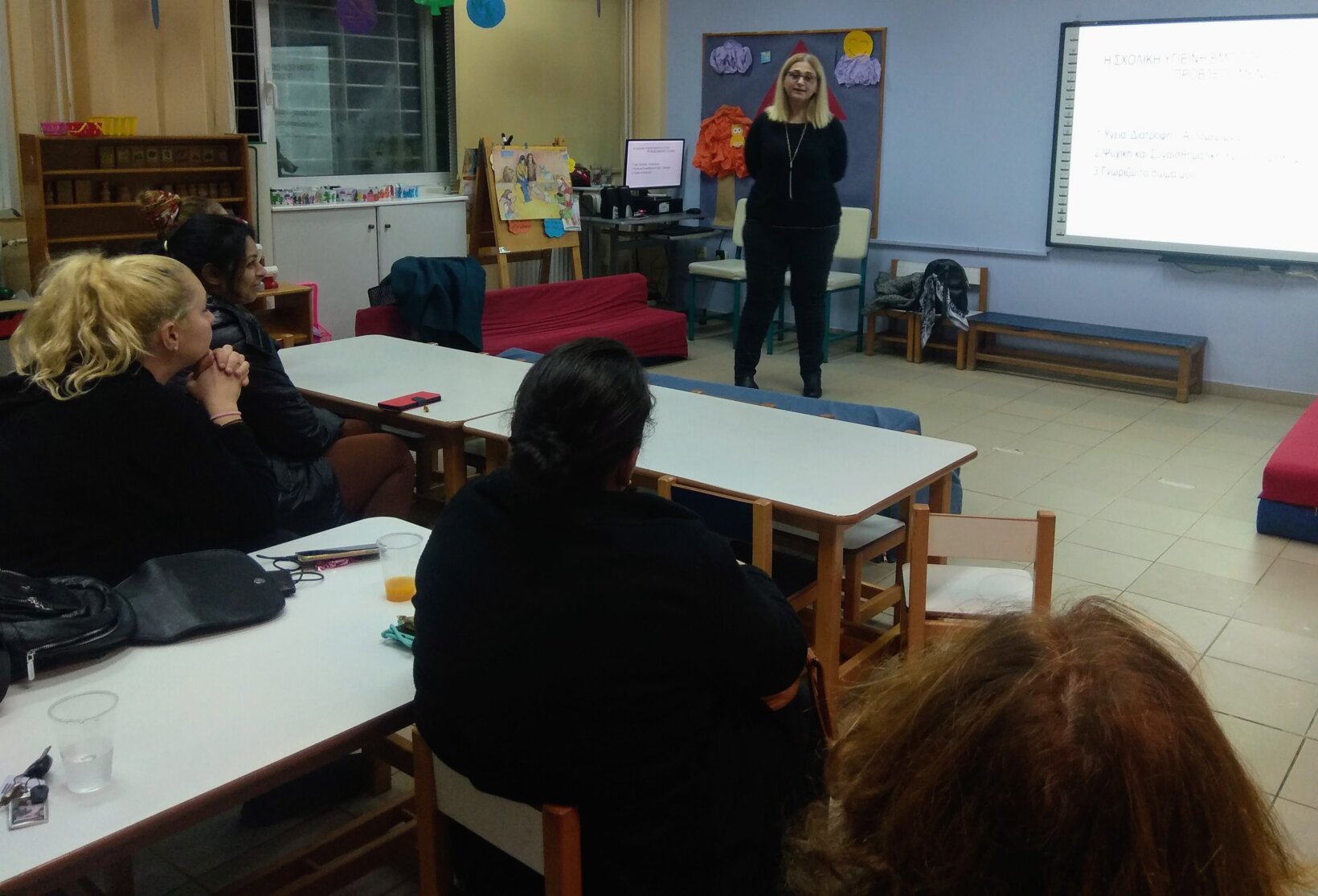 Υπεύθυνη για τη συζήτηση – ομιλία ήταν η κυρία Κιαχοπούλου Νεκταρία. Οι παρευρισκόμενοι εκπαιδευτικοί, γονείς και κηδεμόνες, έλαβαν σημαντικές πληροφορίες για την ατομική υγιεινή και φροντίδα μικρών παιδιών και συζήτησαν τις απορίες και τα ζητήματα που τους απασχολούν γύρω από τη συγκεκριμένη θεματική.
