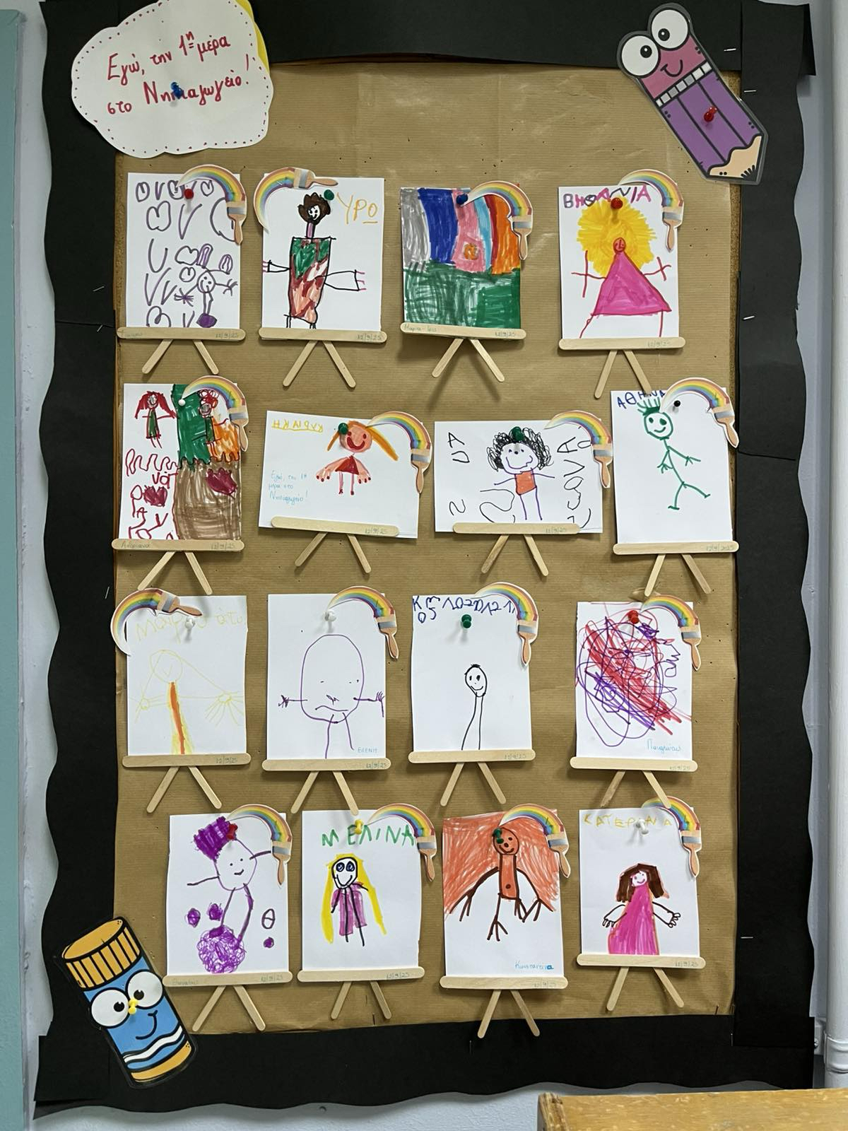 Στις πρώτες μέρες της γνωριμίας μας, παίξαμε με τα ονόματά μας, ζωγραφίσαμε τα αρχικά μας γράμματα και μοιραστήκαμε πληροφορίες για τον εαυτό και την οικογένειά μας.
