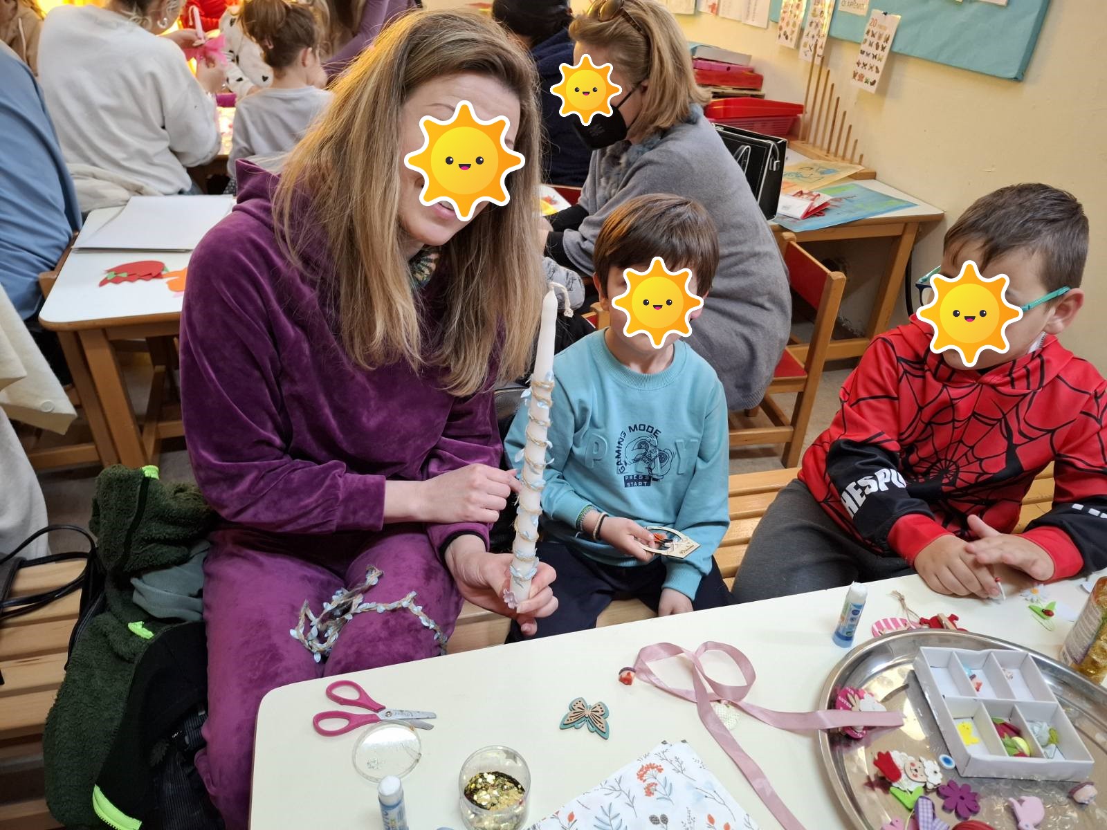 Πάσχα 2025 κάλαντα Λαζάρου Απογευματινό Εργαστήρι Κατασκευής Πασχαλινών Λαμπάδων με γονείς και μαθητές μας Οι μαθητές μας φτιάχνουν πασχαλινά κουλουράκια
