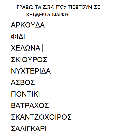 Ελάτε τώρα να προσπαθήσουμε να γράψουμε και τα ονόματα των ζώων..