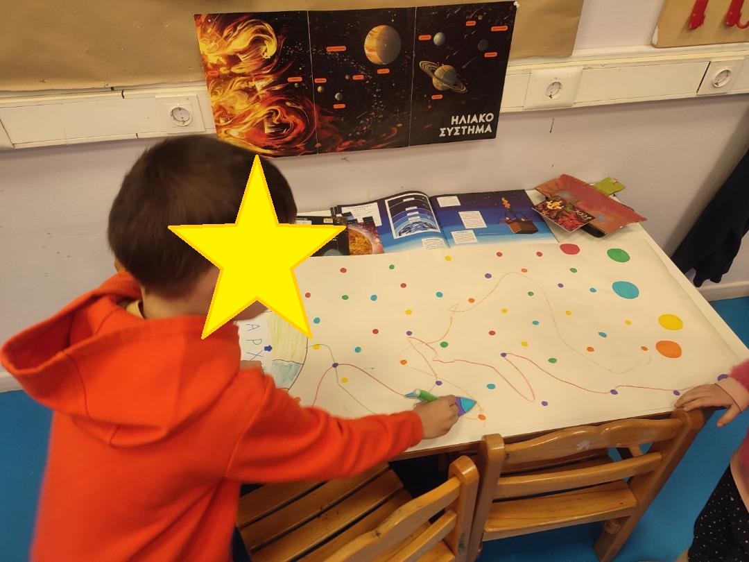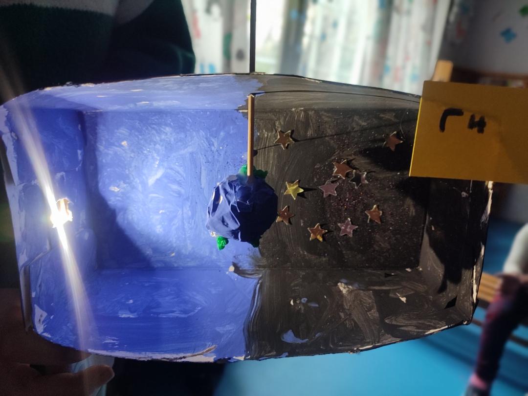 Οι πλανήτες, η Γη μας, ο ήλιος είναι επίσης θέματα που ενδιαφέρουν τα παιδιά μας. Παρατήρησαν την υδρόγειο σφαίρα, και μίλησαν για την περιστροφή της γης γύρω από τον άξονά της και τον ήλιο. Στόχος μας είναι να αντιληφθούν και να κατανοήσουν ότι σε αυτήν την περιστροφή οφείλεται η εναλλαγή μέρας -νύχτας. Έμαθαν επίσης για τις φάσεις της Σελήνης..