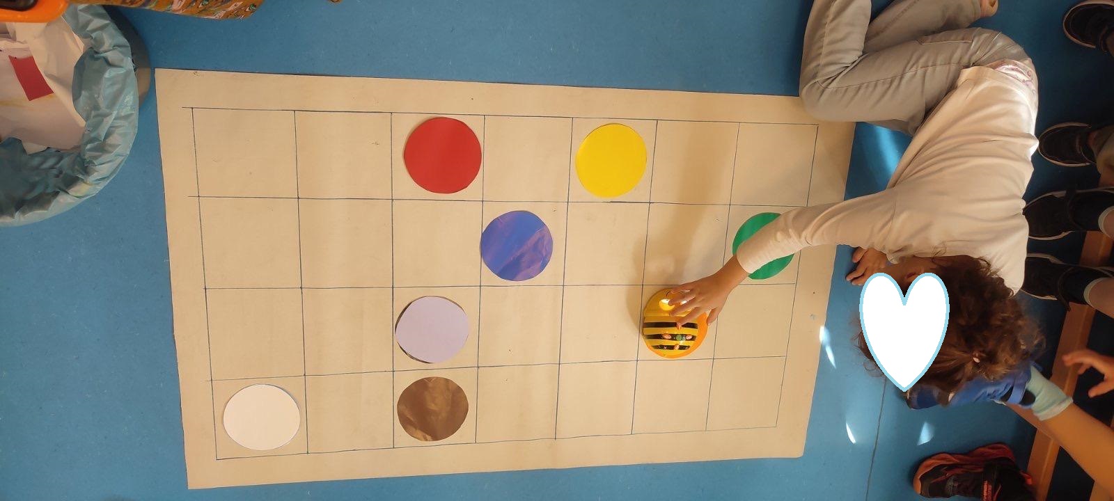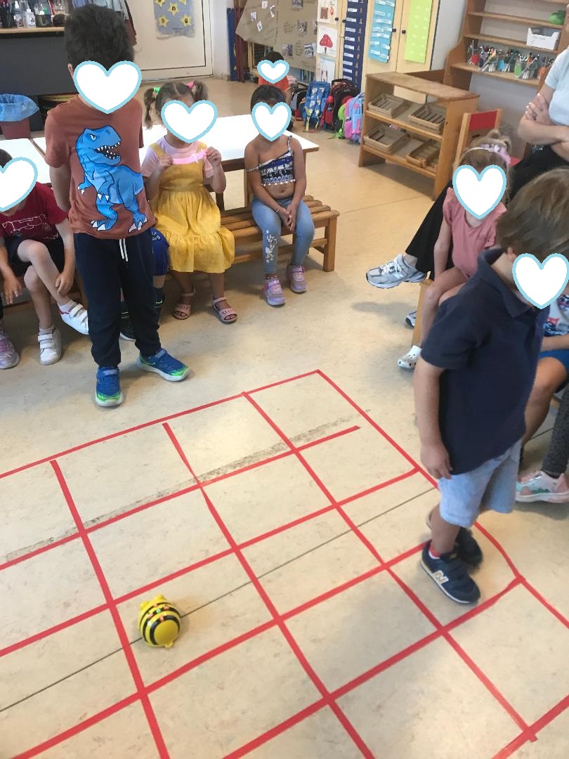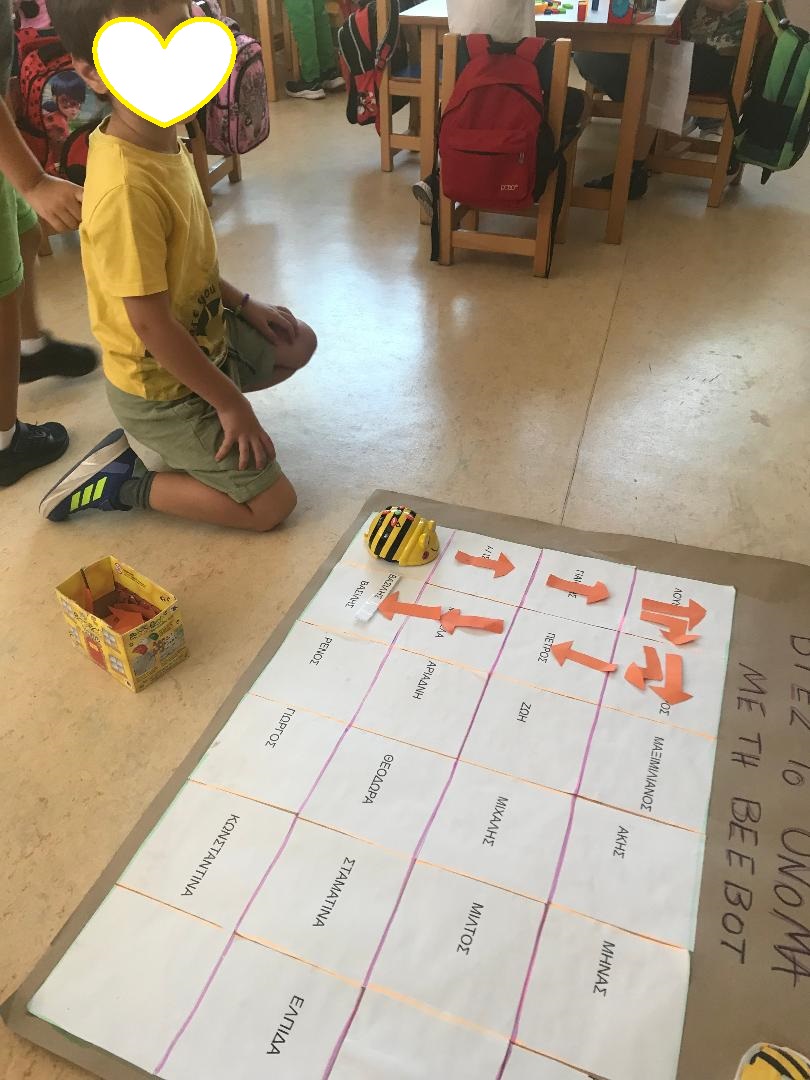 γνωρίσαμε το ρομποτάκι beebot και εξοικειωθήκαμε με το ταμπλό της . Το συγκεκριμένο ρομπότ αποτελεί ένα από τα πιο διαδεδομένα προγραμματιζόμενα παιχνίδια, το οποίο βασίζεται στις αρχές προγραμματισμού της γλώσσας Logo. Tα παιδιά έμαθαν εύκολα και γρήγορα να την προγραμματίζουν, χρησιμοποιώντας τα χρωματιστά πλήκτρα στο επάνω μέρος της, προκειμένου να ακολουθήσει μια συγκεκριμένη διαδρομή.