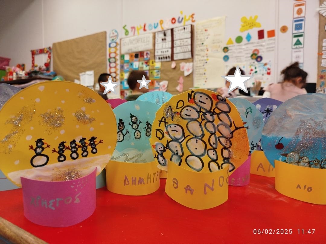 Οι χιονάνθρωποι και οι χιονoνιφάδες που φτιάξαμε με μεικτή τεχνική είναι καταπληκτικοί
