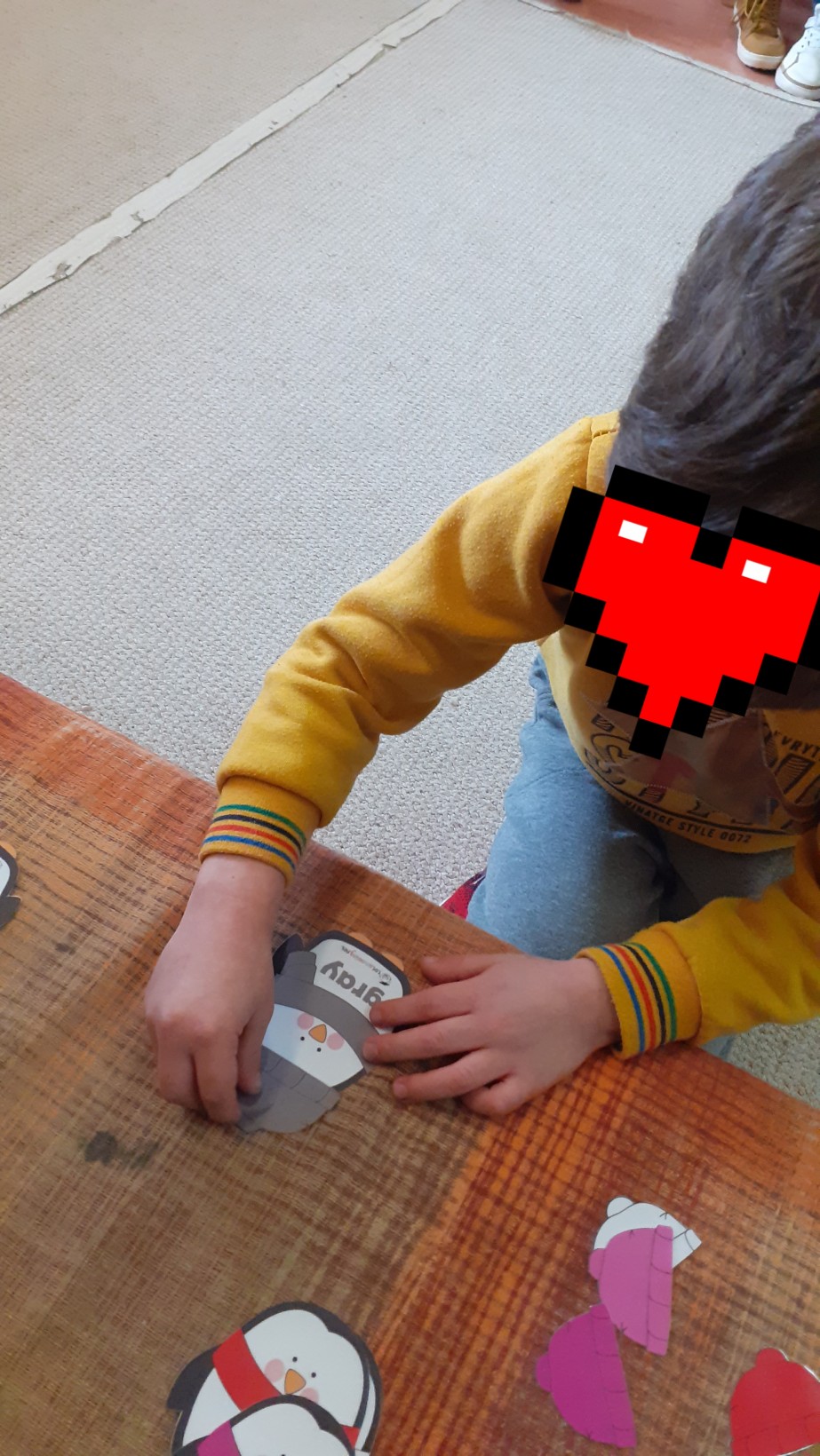 Παίξαμε πολλά παιχνίδια αντιστοίχισης, σειροθετήσαμε από το μεγαλύτερο στο μικρότερο και αντίστροφα και αναφερθήκαμε και στον κύκλο ζωής του πιγκουίνου.