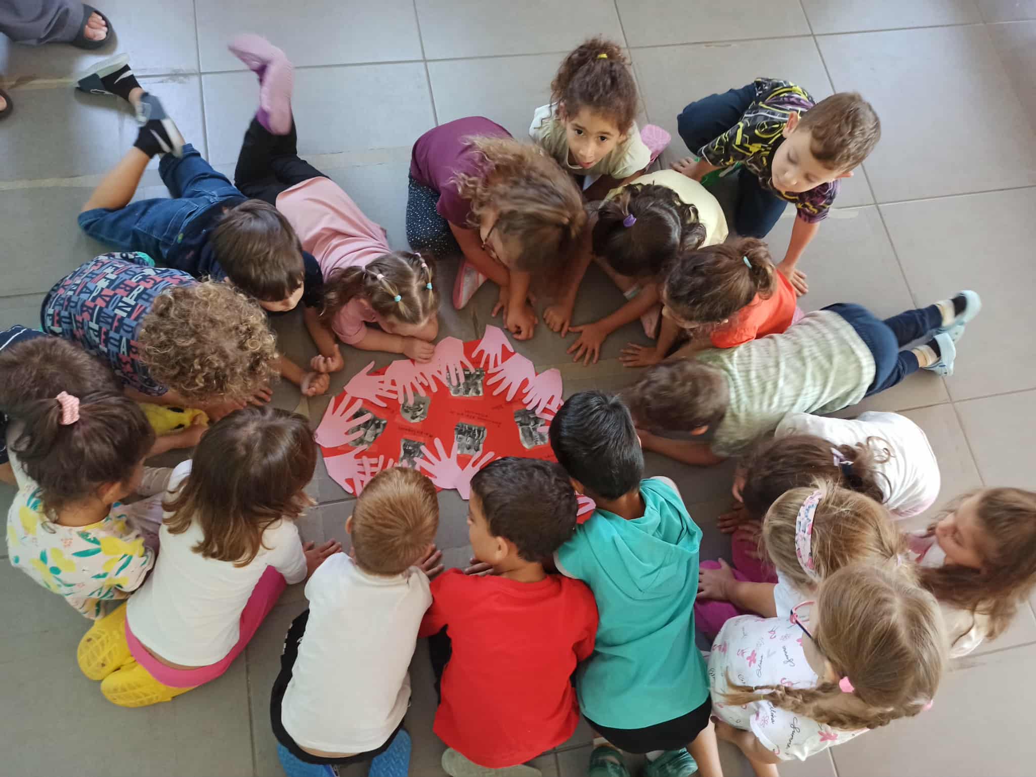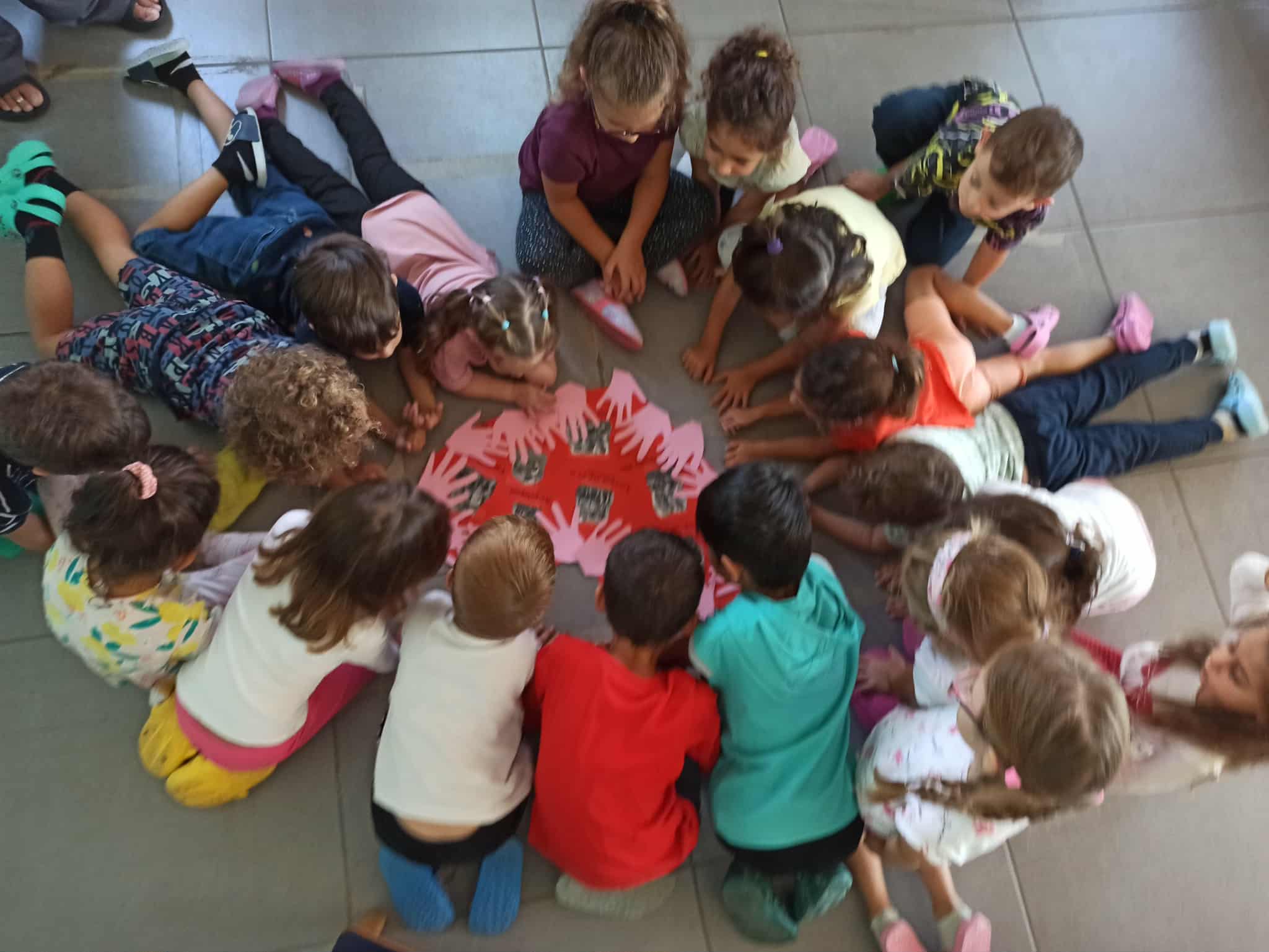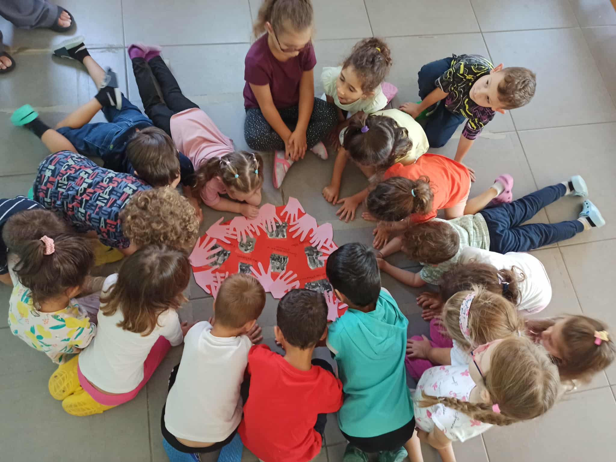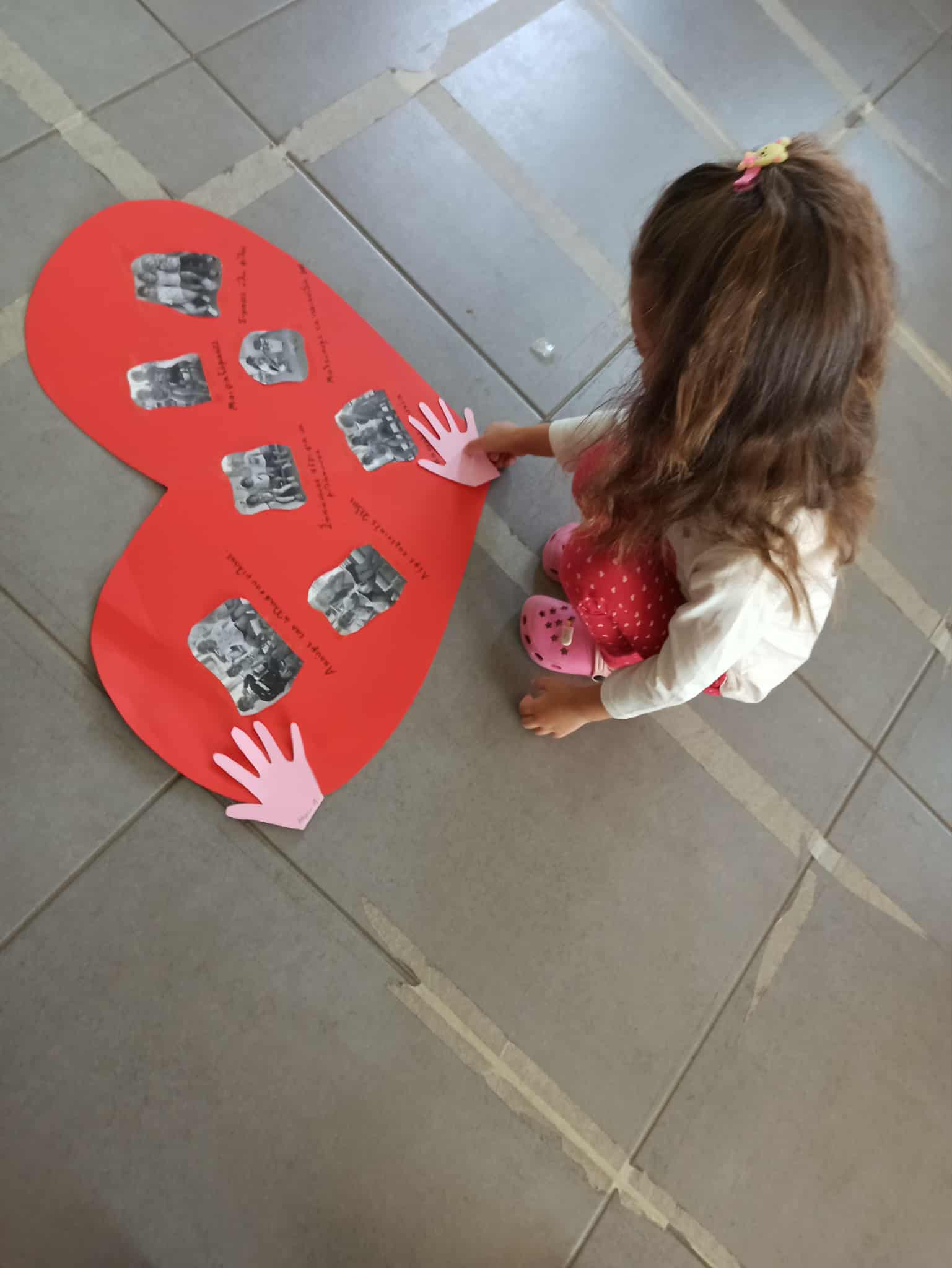 Ζωγραφίσαμε σε χαρτόνι το περίγραμμα από τα χεράκια των παιδιών. Σε μια μεγάλη καρδιά κολλήσαμε τους σωστούς κανόνες που πρέπει ν α ακολουθούμε στο σχολείο και έπειτα κάθε παιδί έπαιρνε το χεράκι του και το κολλούσε γύρω από την καρδιά για να «δηλώσει» ότι συμφωνεί με τους κανόνεςΤροποποιημένα