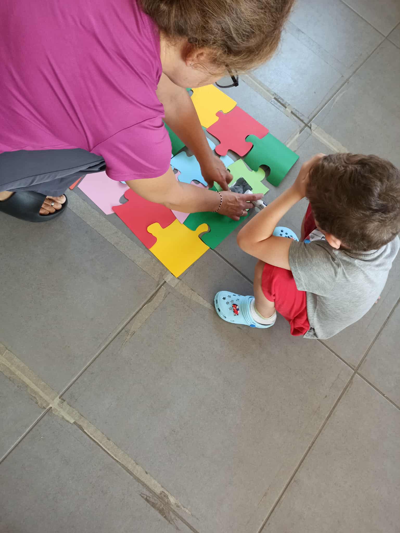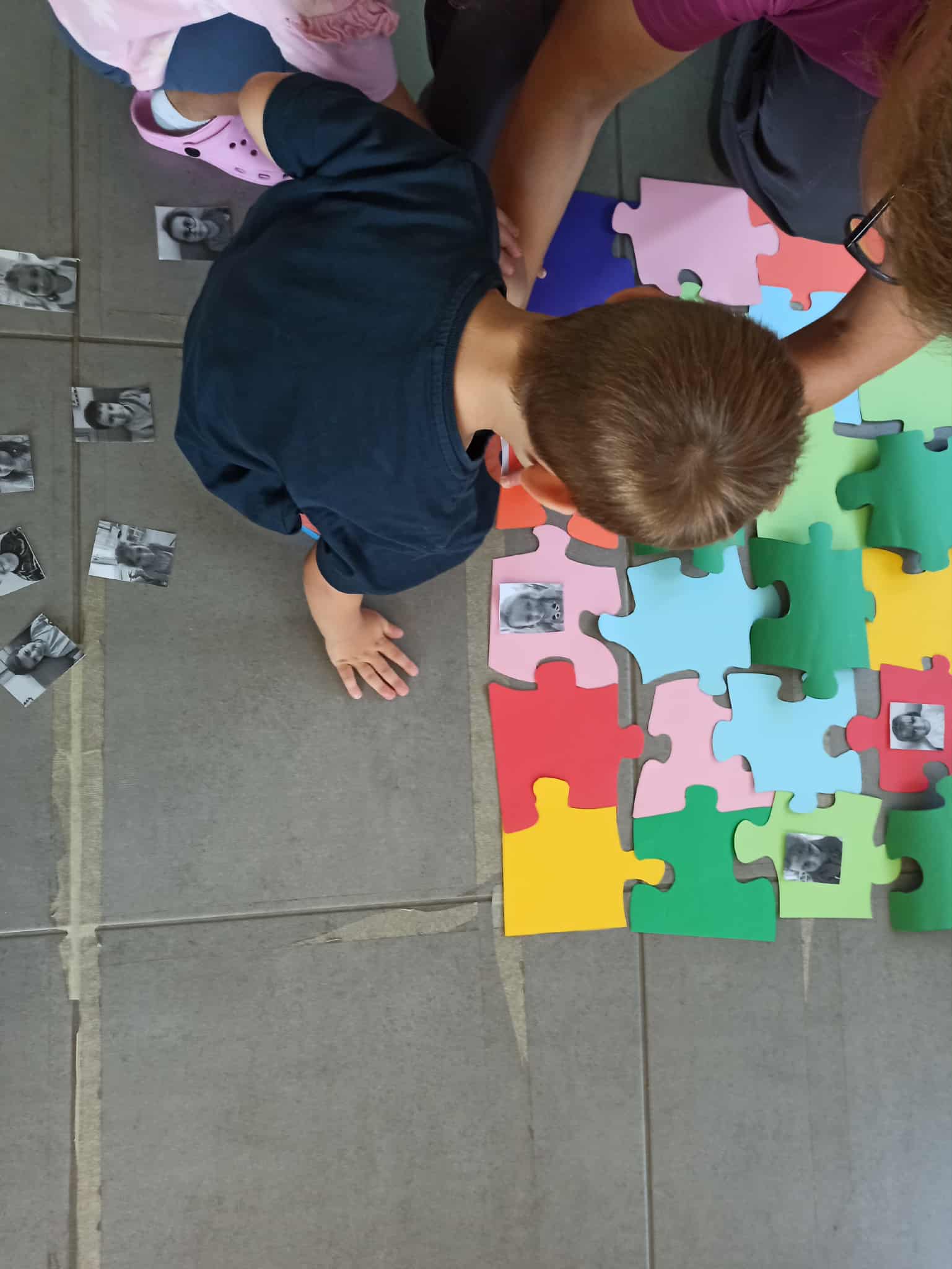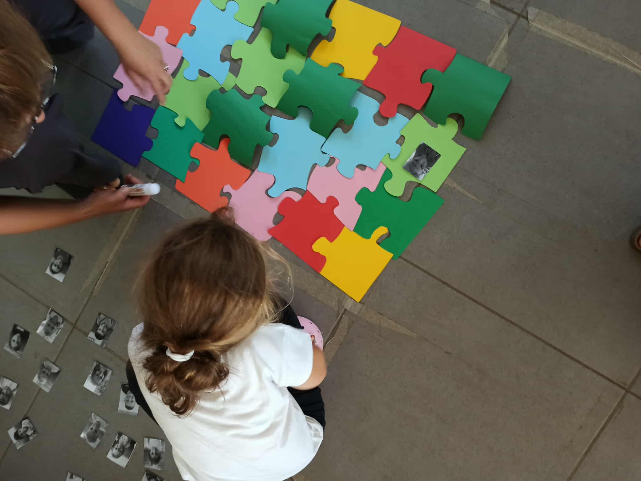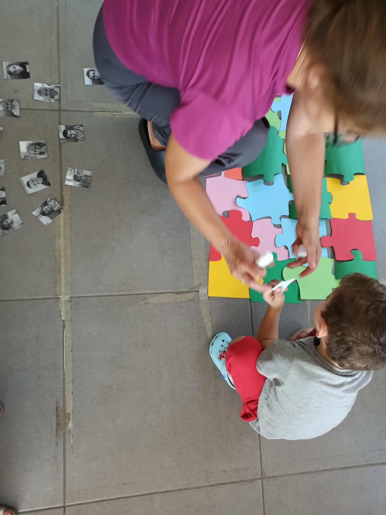 Σήμερα φτιάξαμε «το παζλ της τάξης μας!» Τα παιδιά στην παρεούλα συναρμολογήσαν το παζλ και έπειτα διάλεξαν ένα κομμάτι και κόλλησαν την φωτογραφία τους. Στη συνέχεια το κάθε παιδί έγραψε και το όνομα του!