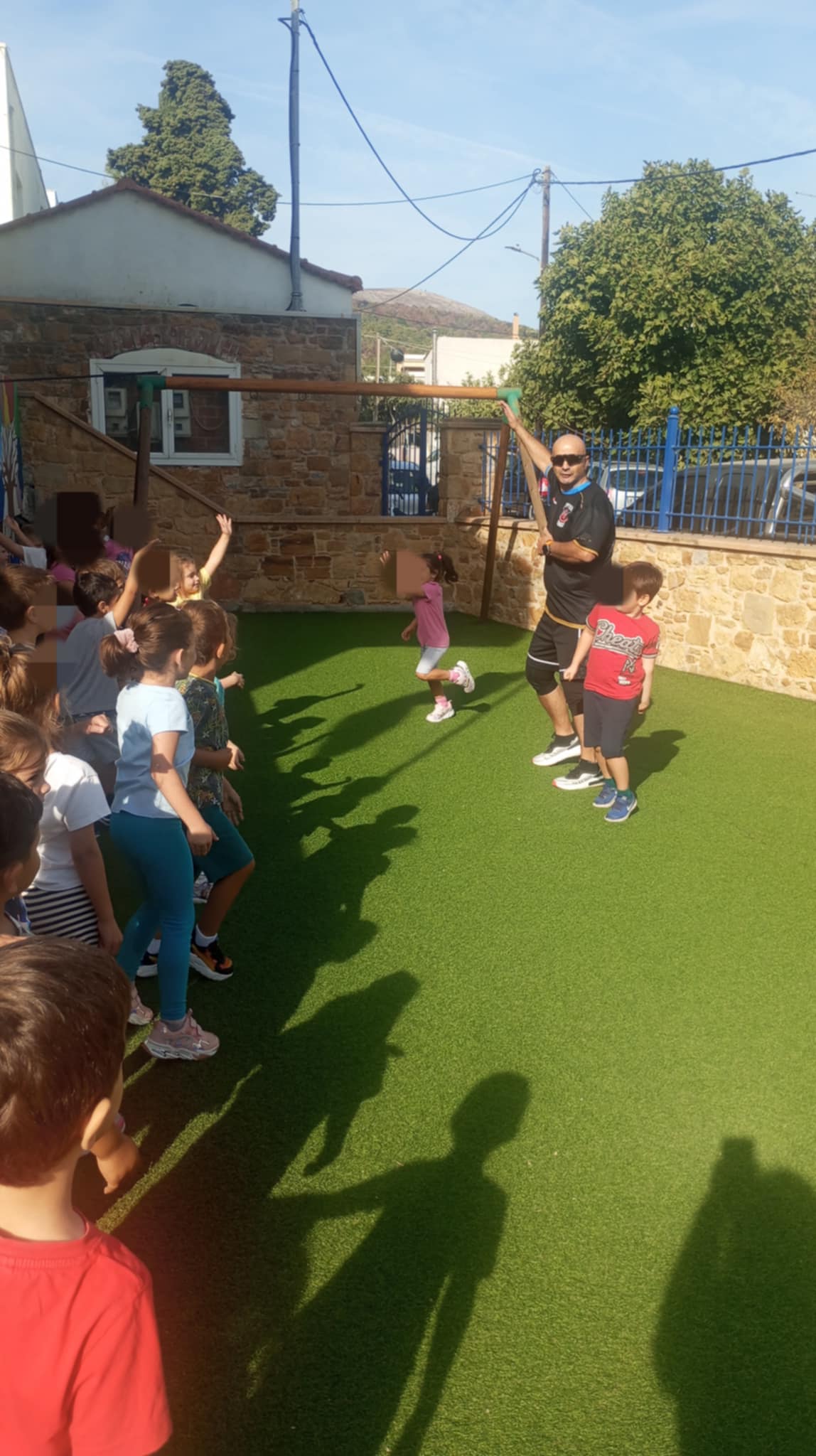 Αφού μιλήσαμε για την σπουδαιότητα της άθλησης στη ζωή μας ,αθληθήκαμε γυμνάζοντας όλες τις ομάδες των μυών μας ,παίξαμε ομαδικά παιχνίδια και τέλος πήραμε όλοι τα βραβεία συμμετοχής μας σε αυτές τις τόσο ευχάριστες για όλους αθλητικές δραστηριότητες…