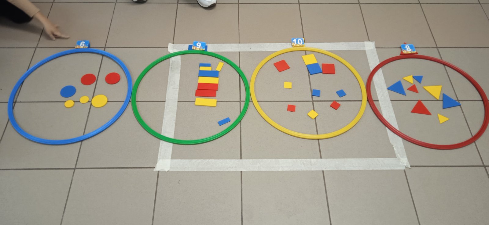 Ομαδοσυνεργατική δραστηριότητα- Η κάθε ομάδα έπρεπε να σχηματίσει το σχήμα που της δόθηκε με τα υλικά που είχε.