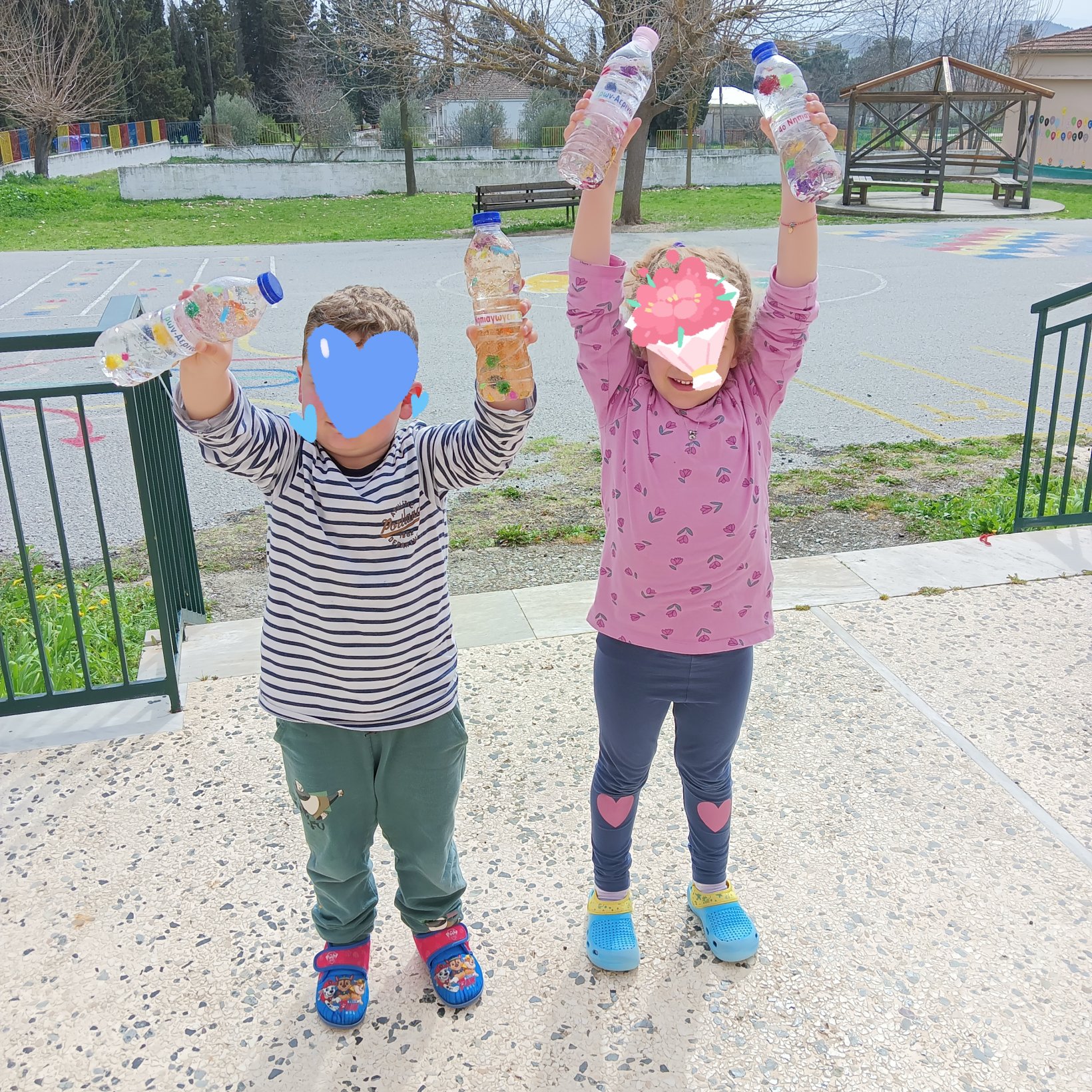 Παράλληλα, τα παιδιά κατασκεύασαν πολυαισθητηριακά μπουκάλια, συνδυάζοντας χρώματα και υφές, τα οποία προσφέρθηκαν με αγάπη στα παιδιά του Ειδικού Νηπιαγωγείου Βόλου “Κένταυροι”.