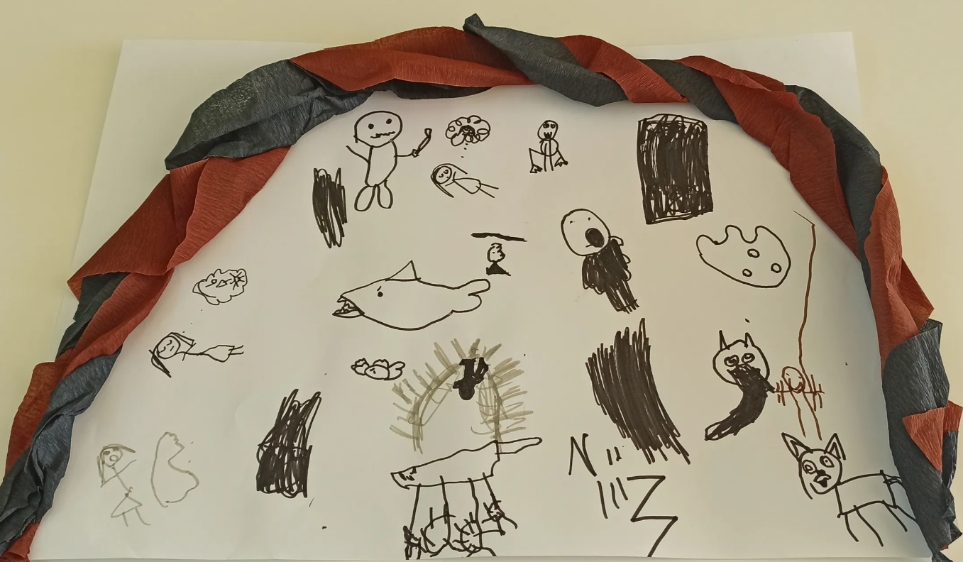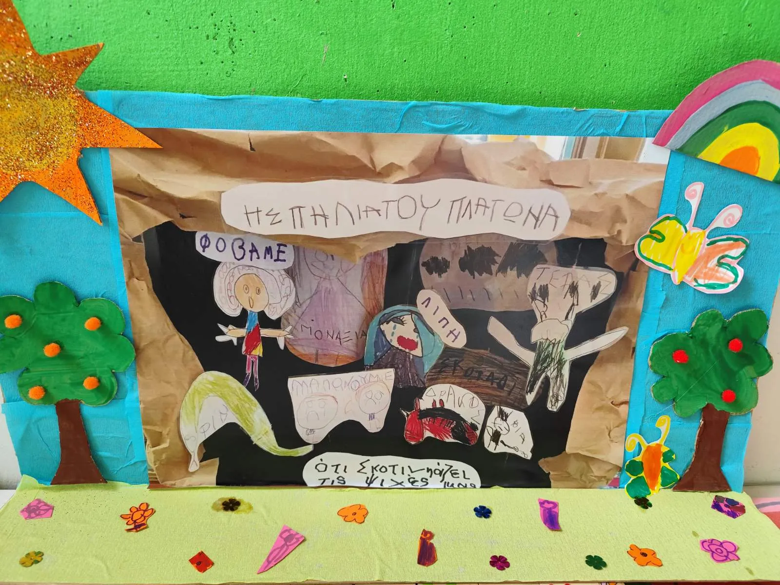 Η εικαστική αποτύπωση της φωτεινής πια δικής μας Σπηλιάς του Πλάτωνα από τα παιδάκια του 7ου Πειραματικού Νηπιαγωγείου Χανίων, που προσπάθησαν να διώξουν μακριά τα σκοτάδια των φίλων τους!