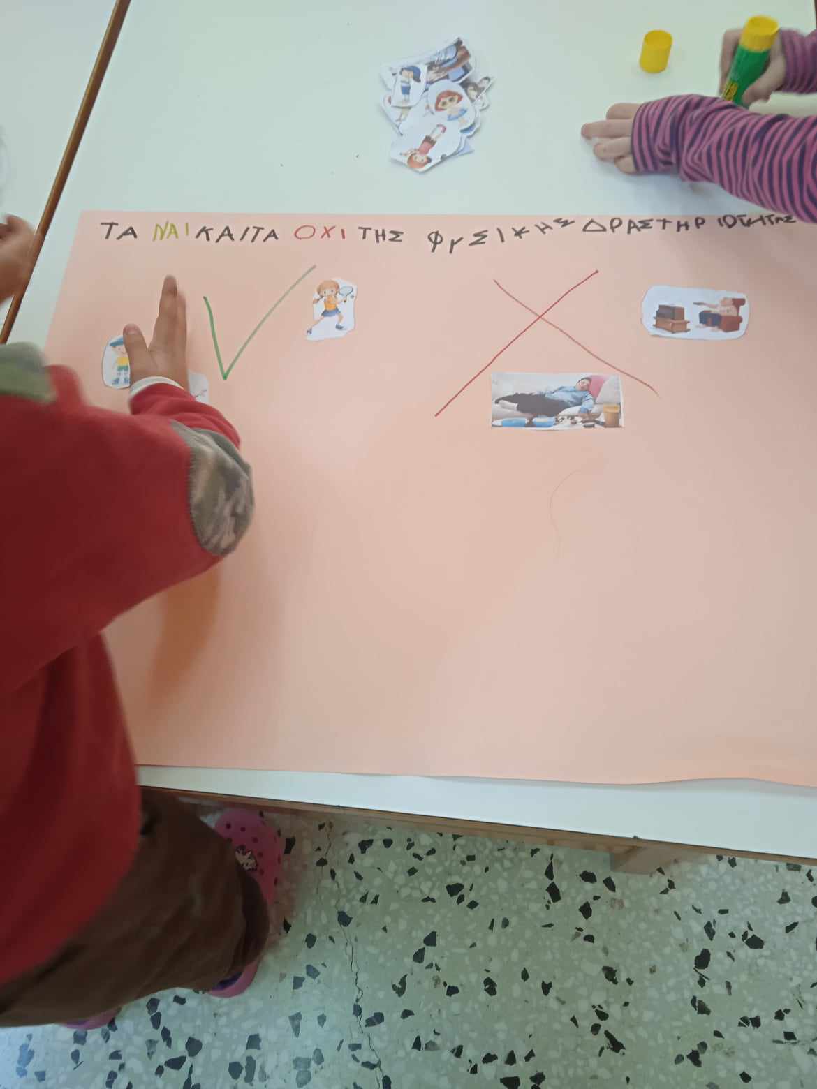 Μέσω πειραματισμού καταλήγουν σε συμπεράσματα σχετικά με το τι συμβαίνει αν τρέφομαι μόνο με ανθυγιεινές τροφές, αν τρέφομαι υγιεινά αλλά δεν ασκούμαι καθόλου, αν τρέφομαι μόνο με μια ομάδα τροφών, αν τρέφομαι υγιεινά και ασκούμαι. Τα παιδιά καταγράφουν τα συμπεράσματά τους στο φύλλο εργασίας. Στην ολομέλεια το καθένα αναφέρει το σενάριο της και το συμπέρασμα στο οποίο κατέληξε