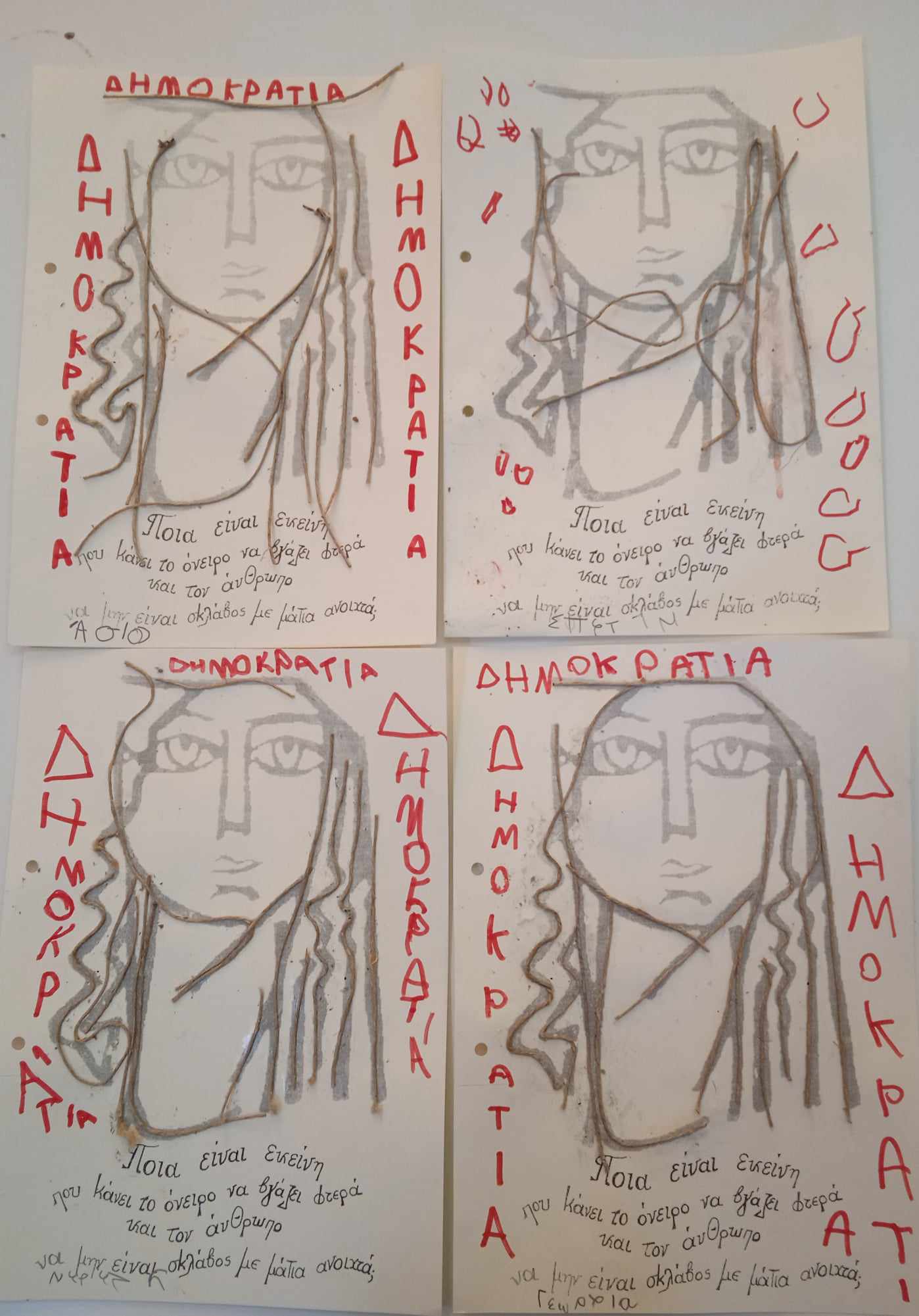 Στο πλαίσιο του θεματικού πεδίου: “Παιδί, Σώμα, Δημιουργία και Έκφραση” φιλοτεχνήσαμε το πορτραίτο της Δημοκρατίας. Την εικόνα τη βρήκαμε στο Διαδίκτυο.