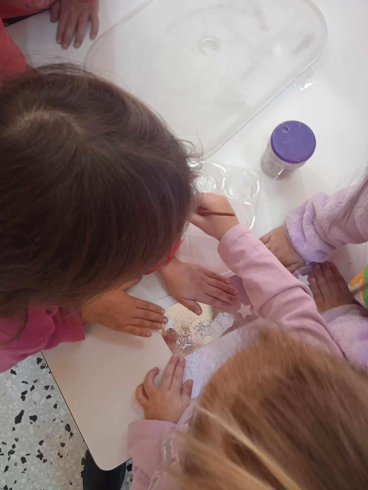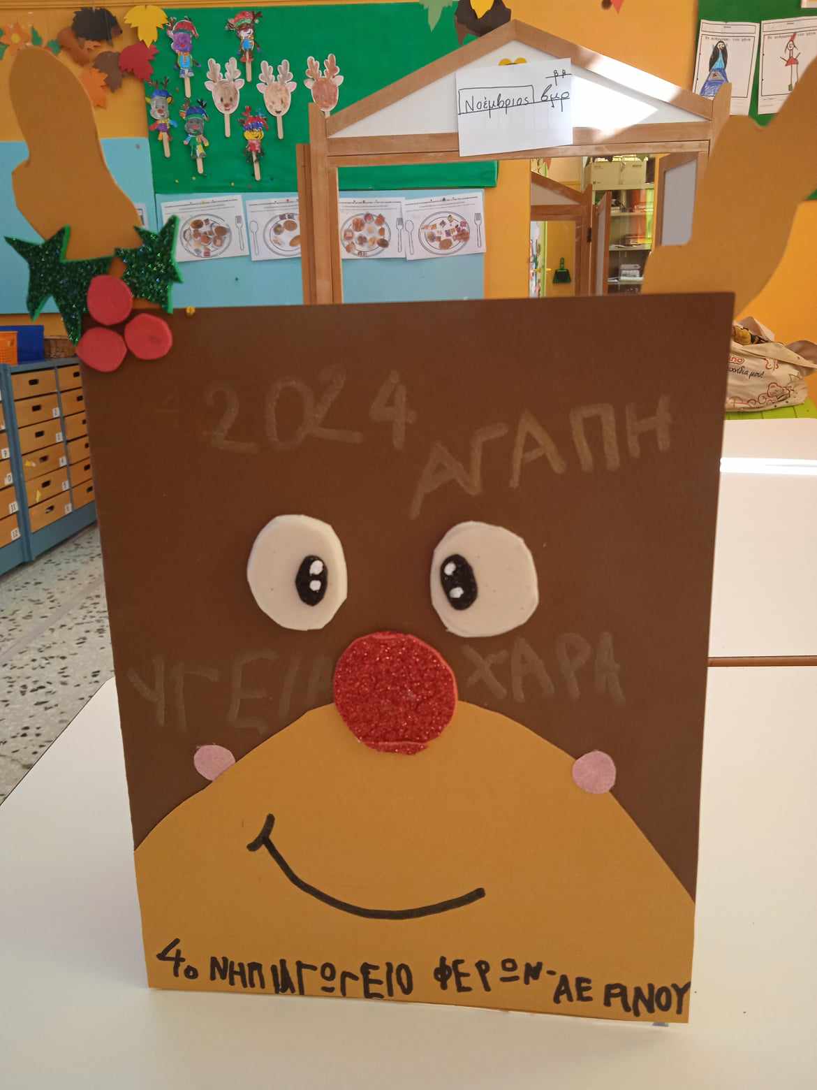 Ο Δεκέμβρης στο νηπιαγωγείο μας κύλησε με χριστουγεννιάτικηδιάθεση. Διαβάσαμε χριστουγεννιάτικα παραμύθια, μάθαμε χριστουγεννιάτικα τραγούδια, διακοσμήσαμε την τάξη μας. Πειραματιστήκαμε με νέες τεχνικές όπως το στένσιλ, το ντεκουπάζ, “λουστήκαμε” με χρυσόσκονη, παίξαμε, γελάσαμε!!!