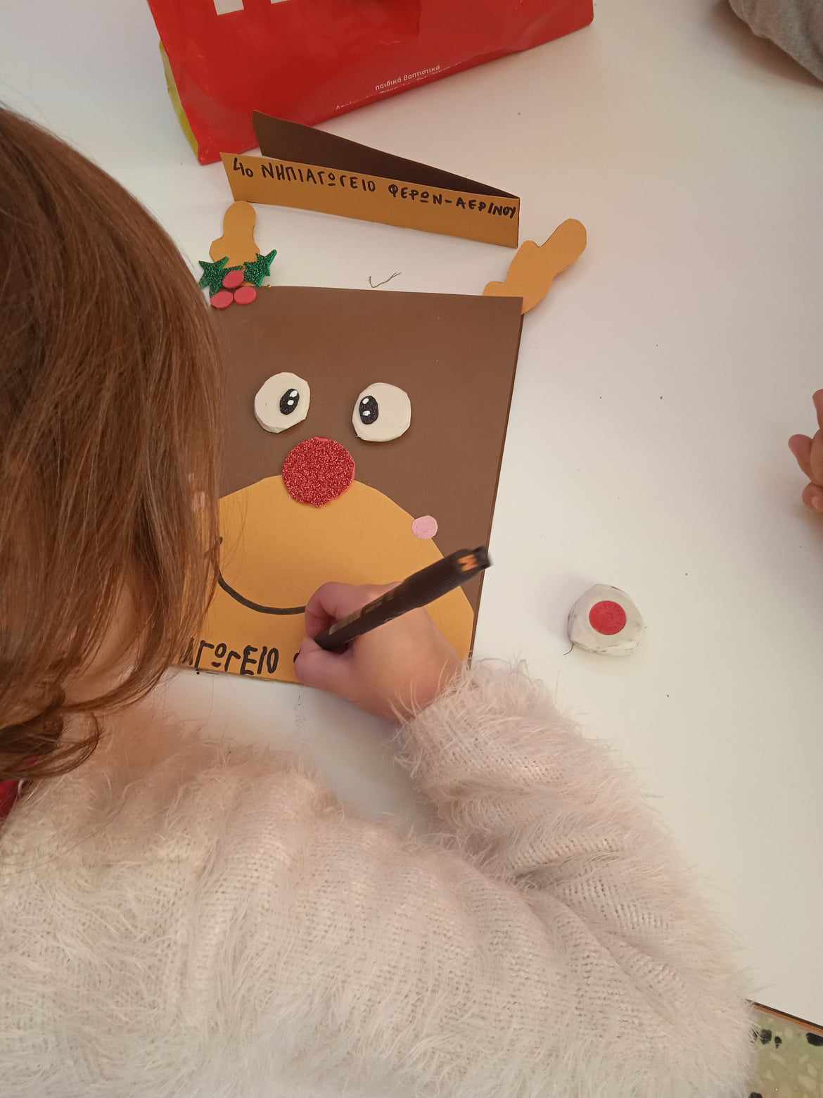 Φτιάξαμε τις κάρτες μας και ομαδοσυνεργατικά την κάρτα που στείλαμε τις ευχές μας στο ΑΧΕΠΑ. Παίξαμε χριστουγεννιάτικα τραγούδια, φτιάξαμε το σκηνικό της γιορτής μας, τις στολές μας και φυσικά την πρόσκληση!