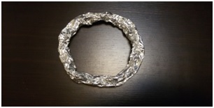 Αρχικά κόβετε ένα μεγάλο κομμάτι αλουμινόχαρτο και δημιουργείτε έναν κύκλο, ο οποίος θα είναι το στεφανάκι σας.